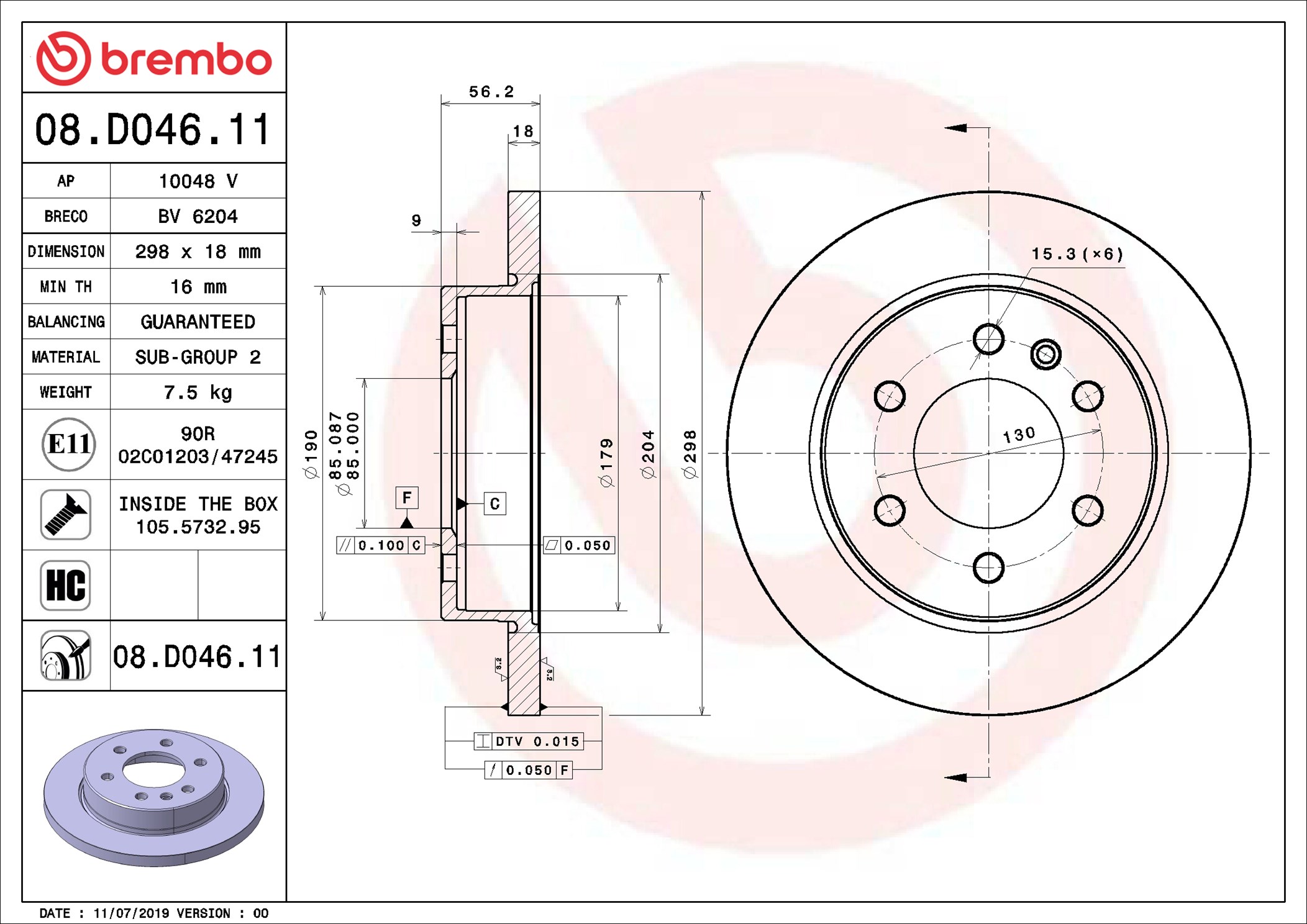 BREMBO 08.D046.11 - Brzdový kotouč