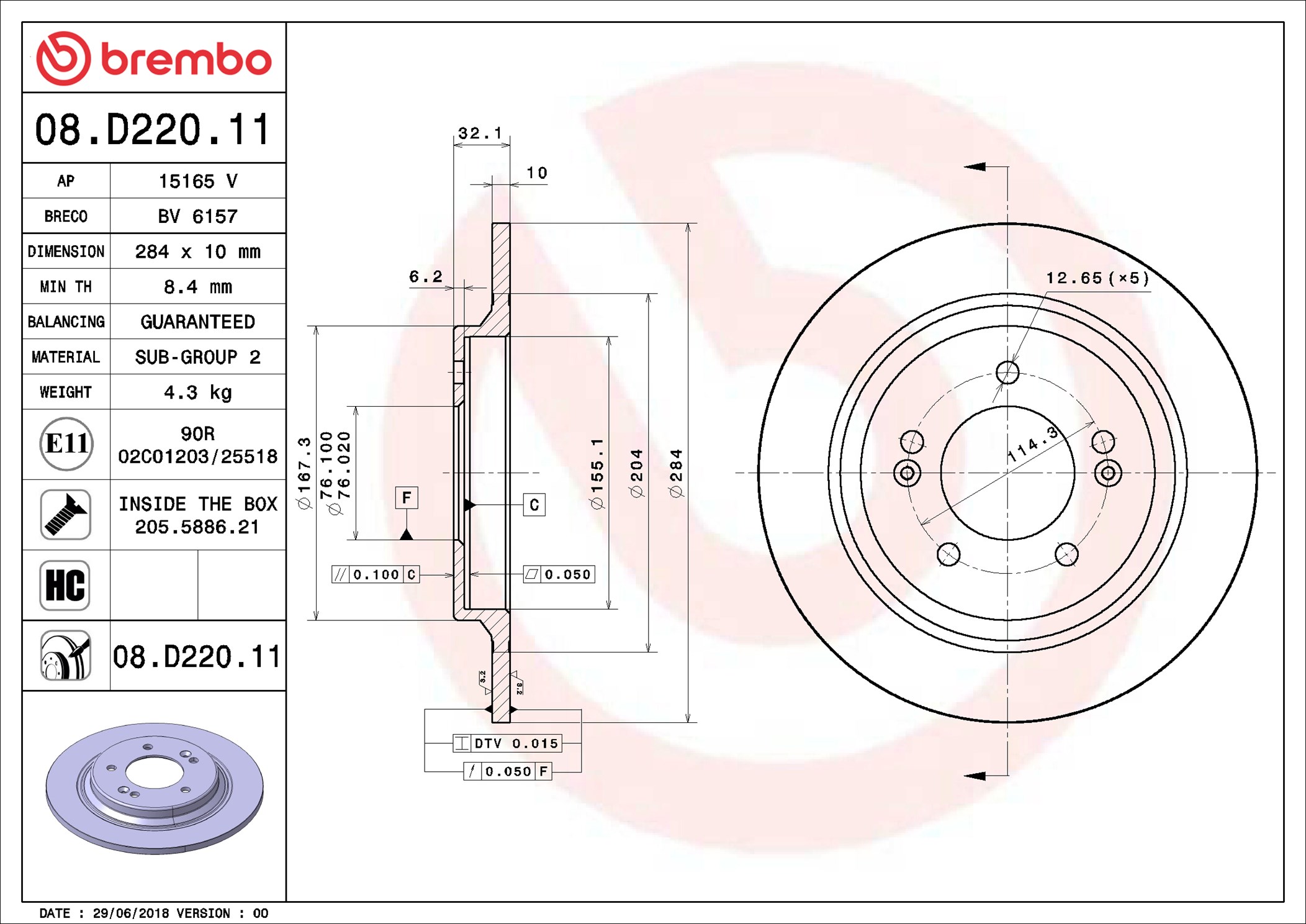 BREMBO 08.D220.11 - Brzdový kotouč