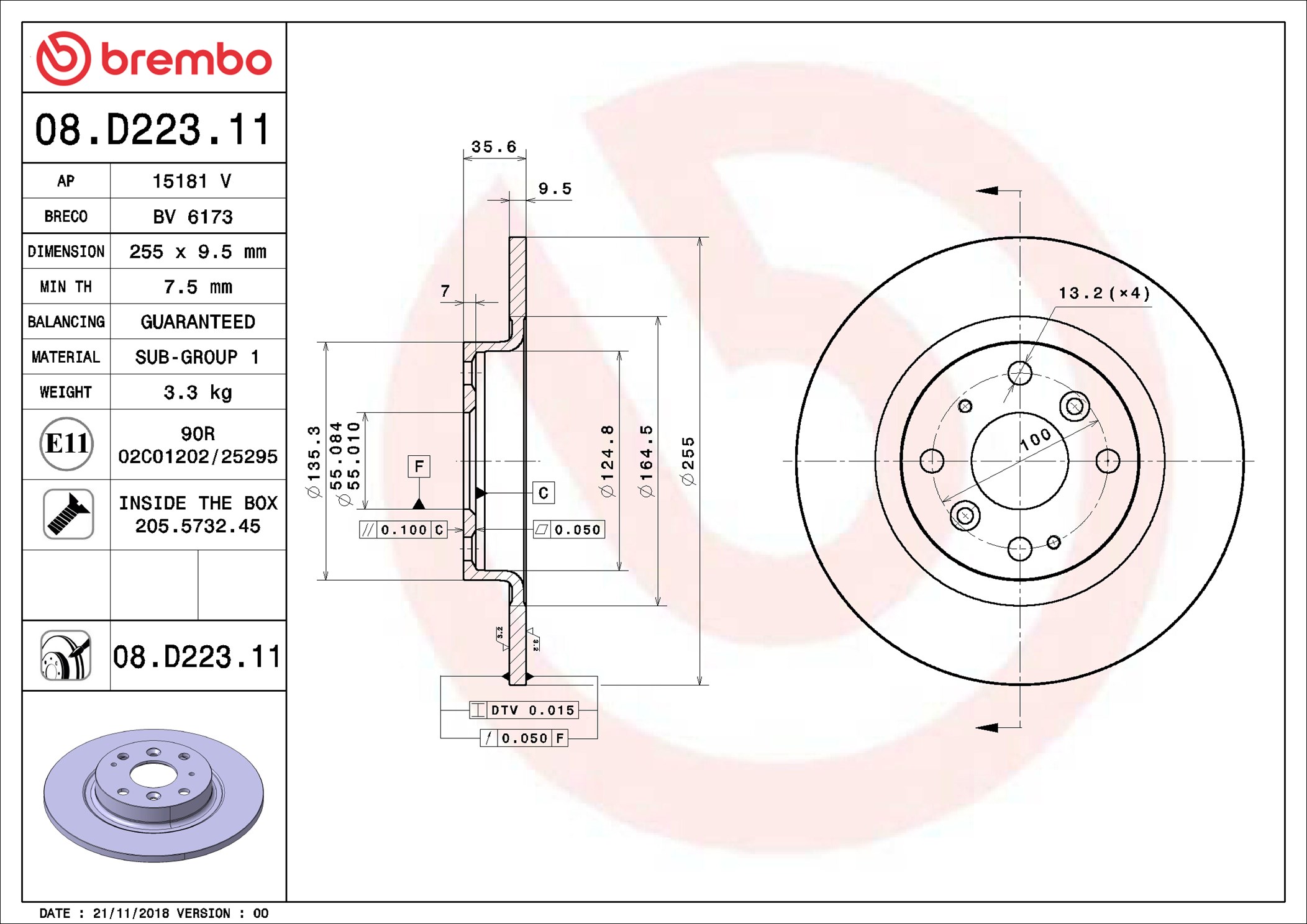 BREMBO 08.D223.11 - Brzdový kotouč