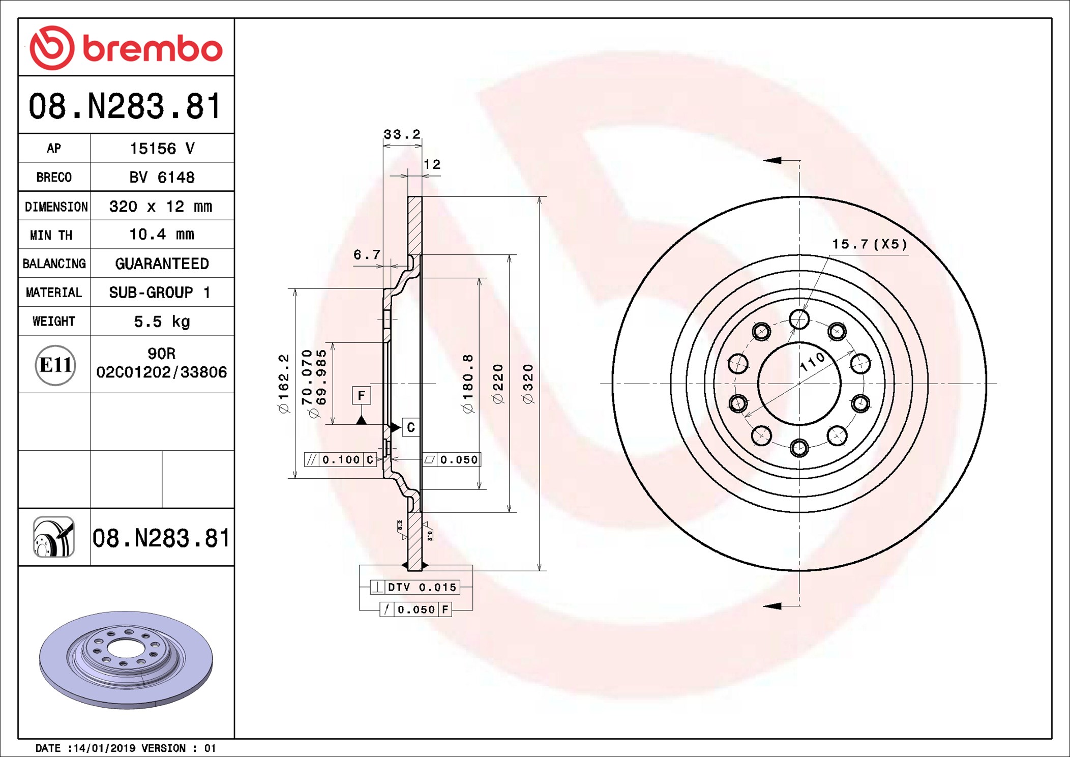 BREMBO 08.N283.81 - Brzdový kotouč