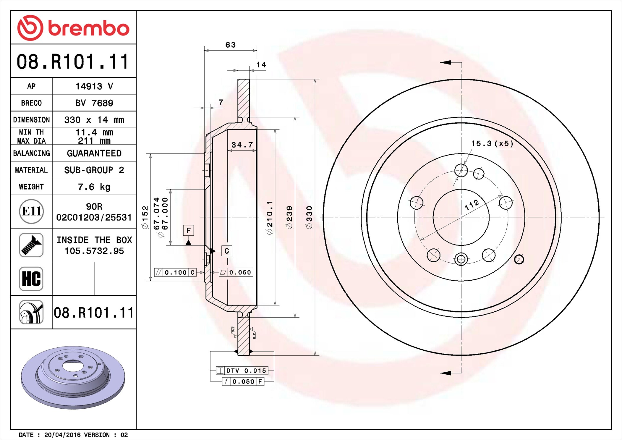 BREMBO 08.R101.11 - Brzdový kotouč