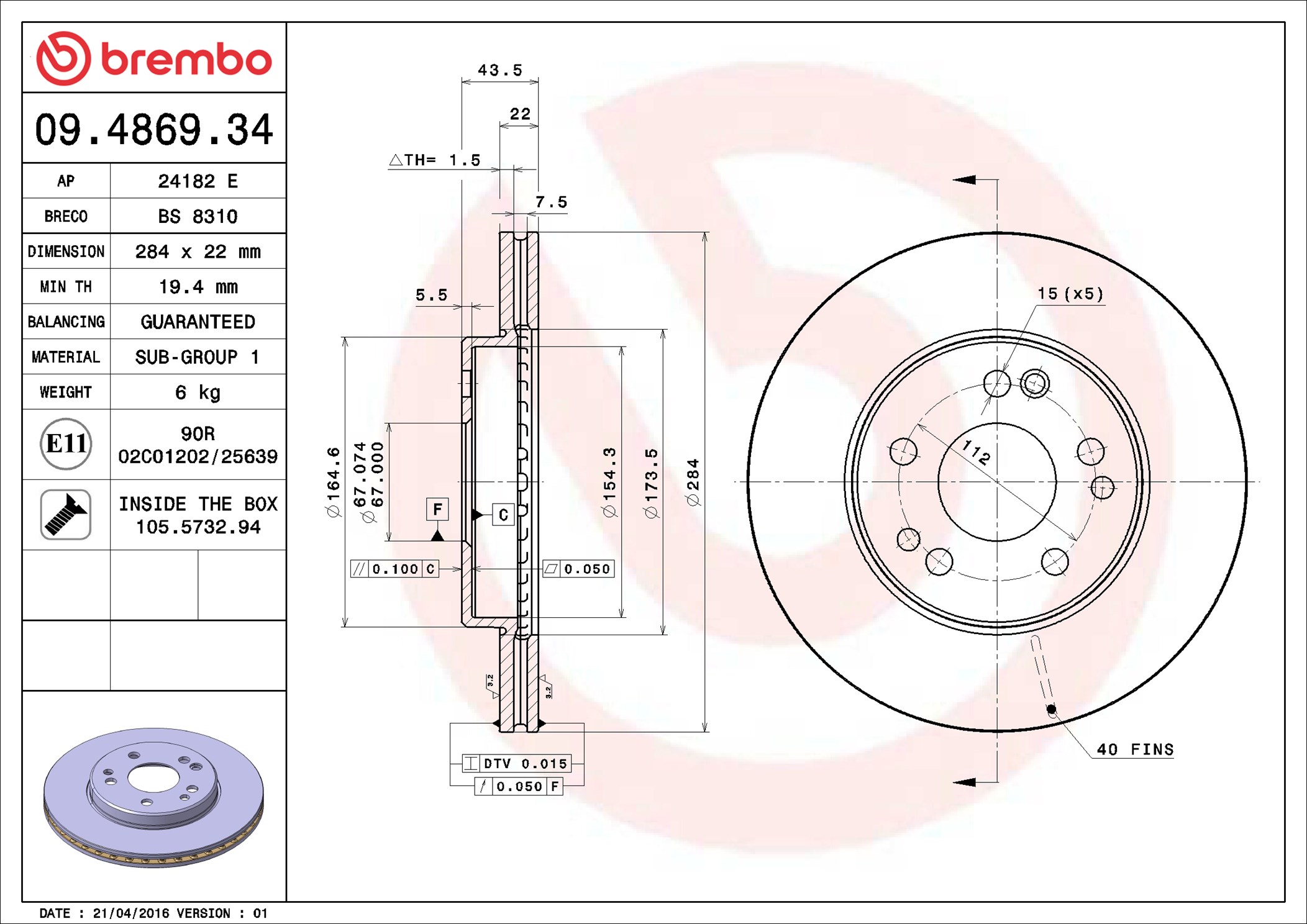 BREMBO 09.4869.34 - Brzdový kotouč