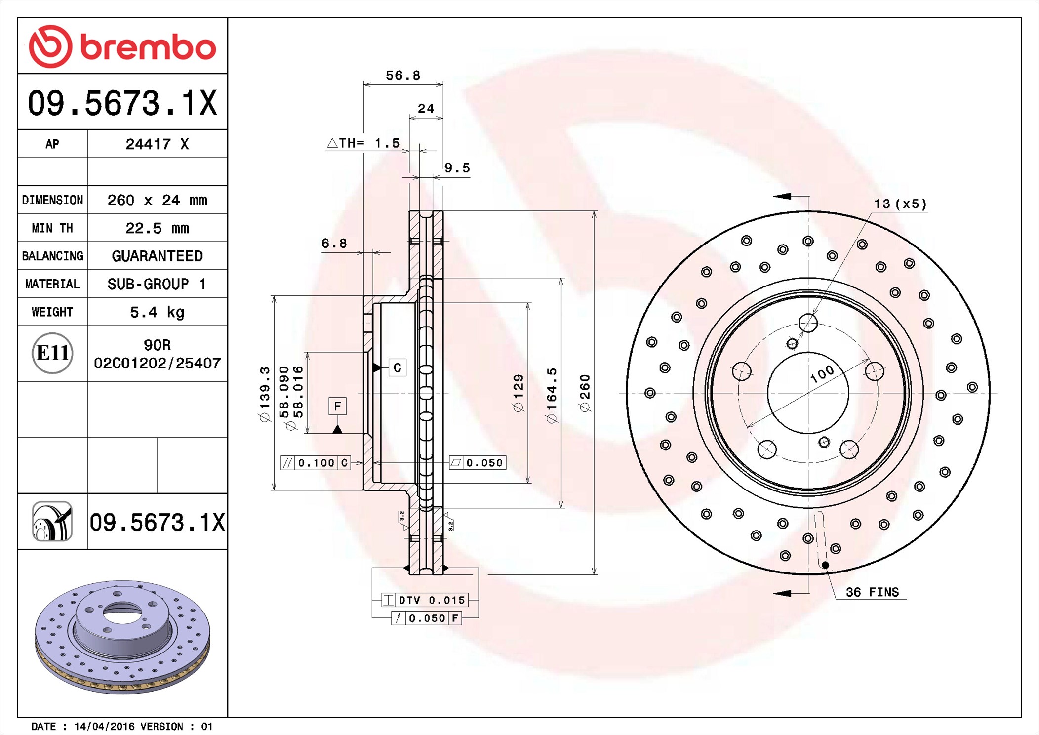 BREMBO 09.5673.1X - Brzdový kotouč