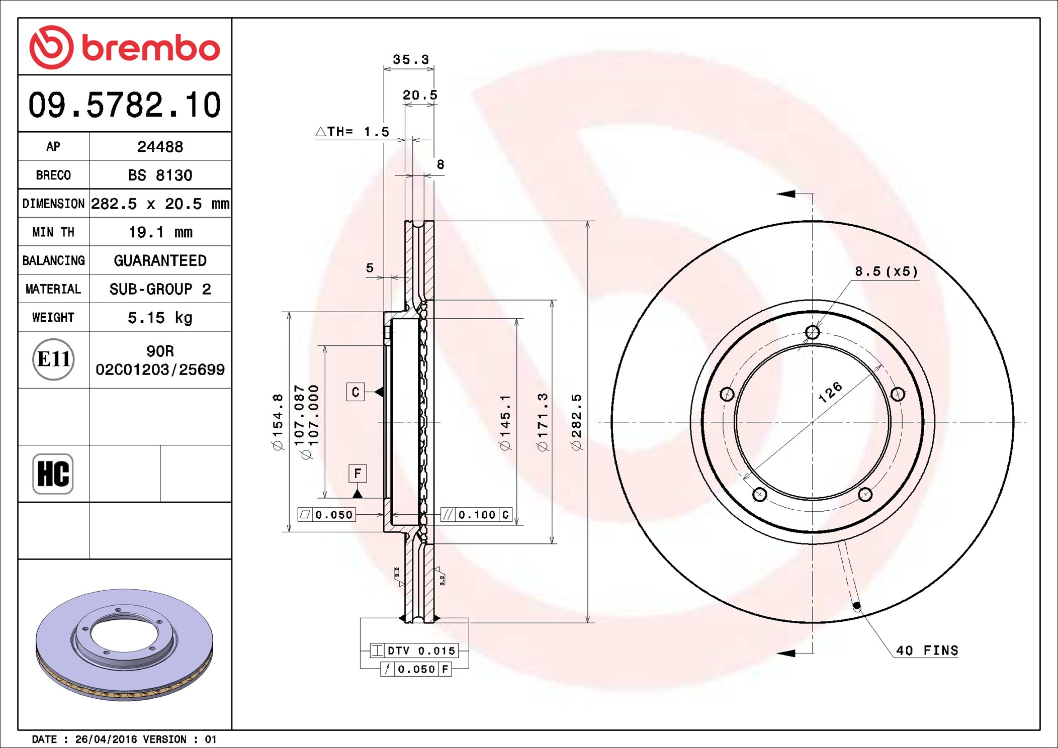 BREMBO 09.5782.10 - Brzdový kotouč