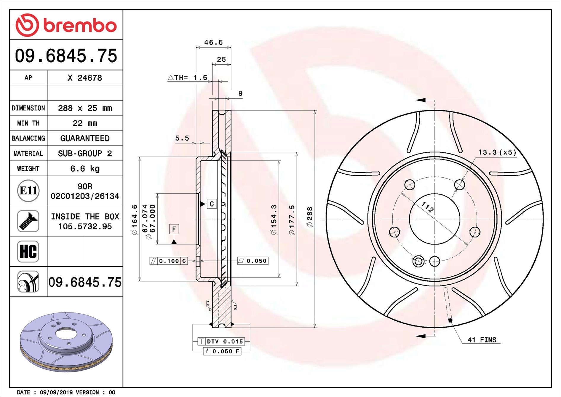 BREMBO 09.6845.75 - Brzdový kotouč