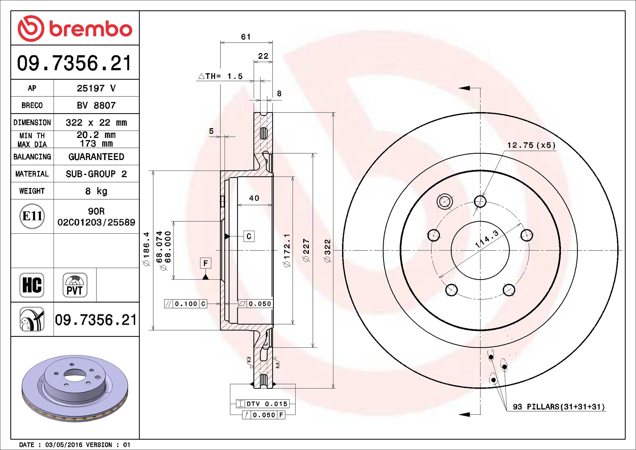 BREMBO 09.7356.21 - Brzdový kotouč
