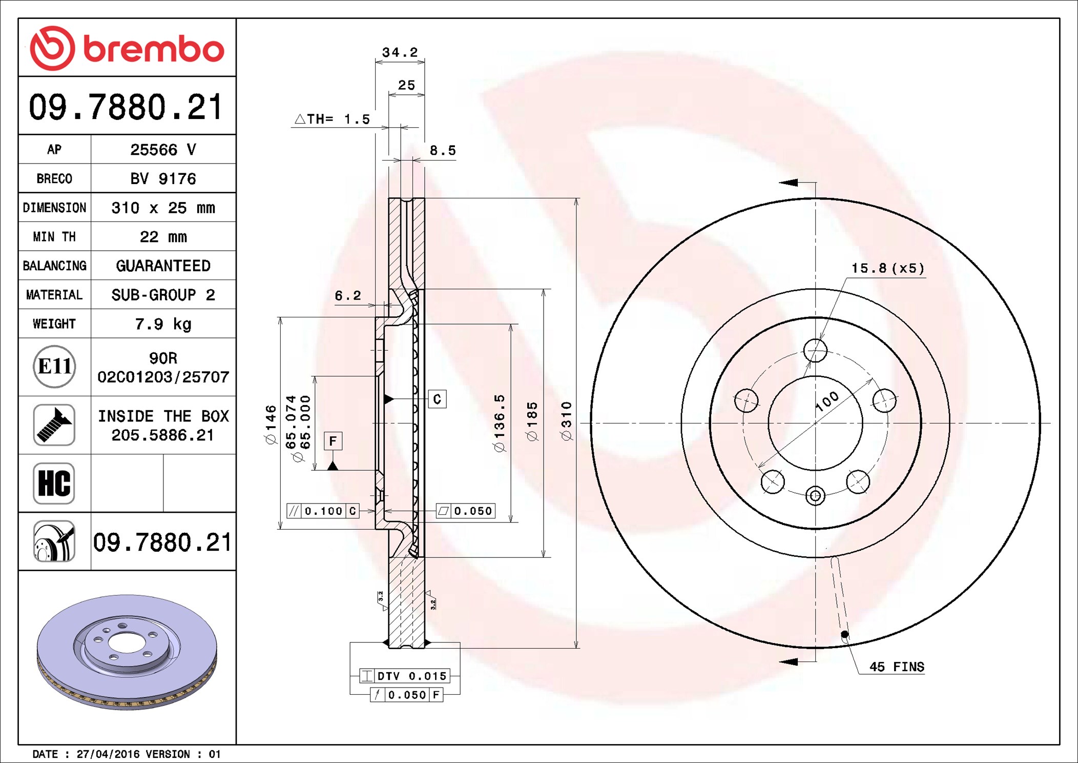 BREMBO 09.7880.21 - Brzdový kotouč