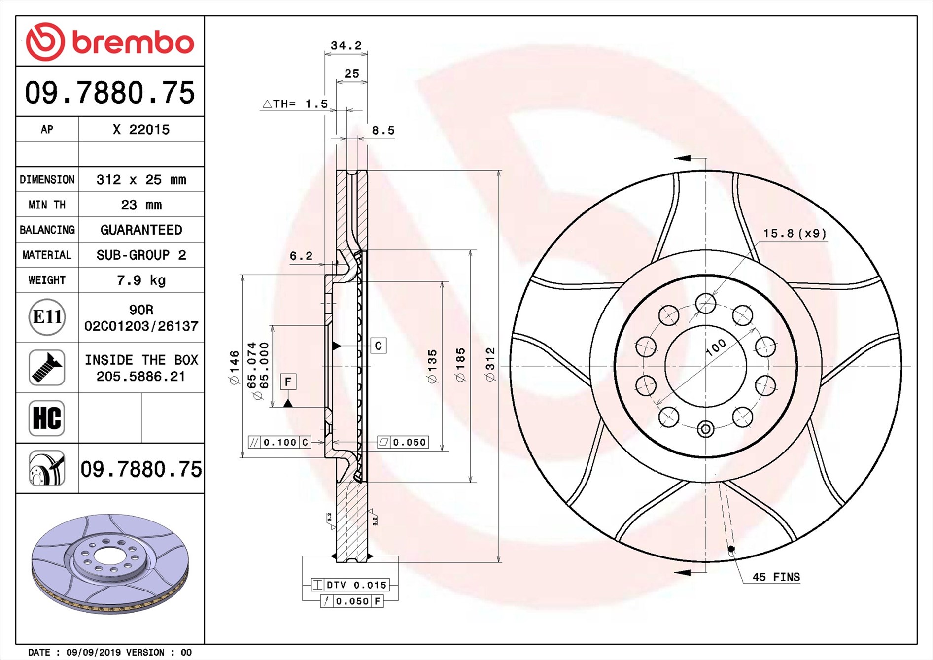 BREMBO 09.7880.75 - Brzdový kotouč