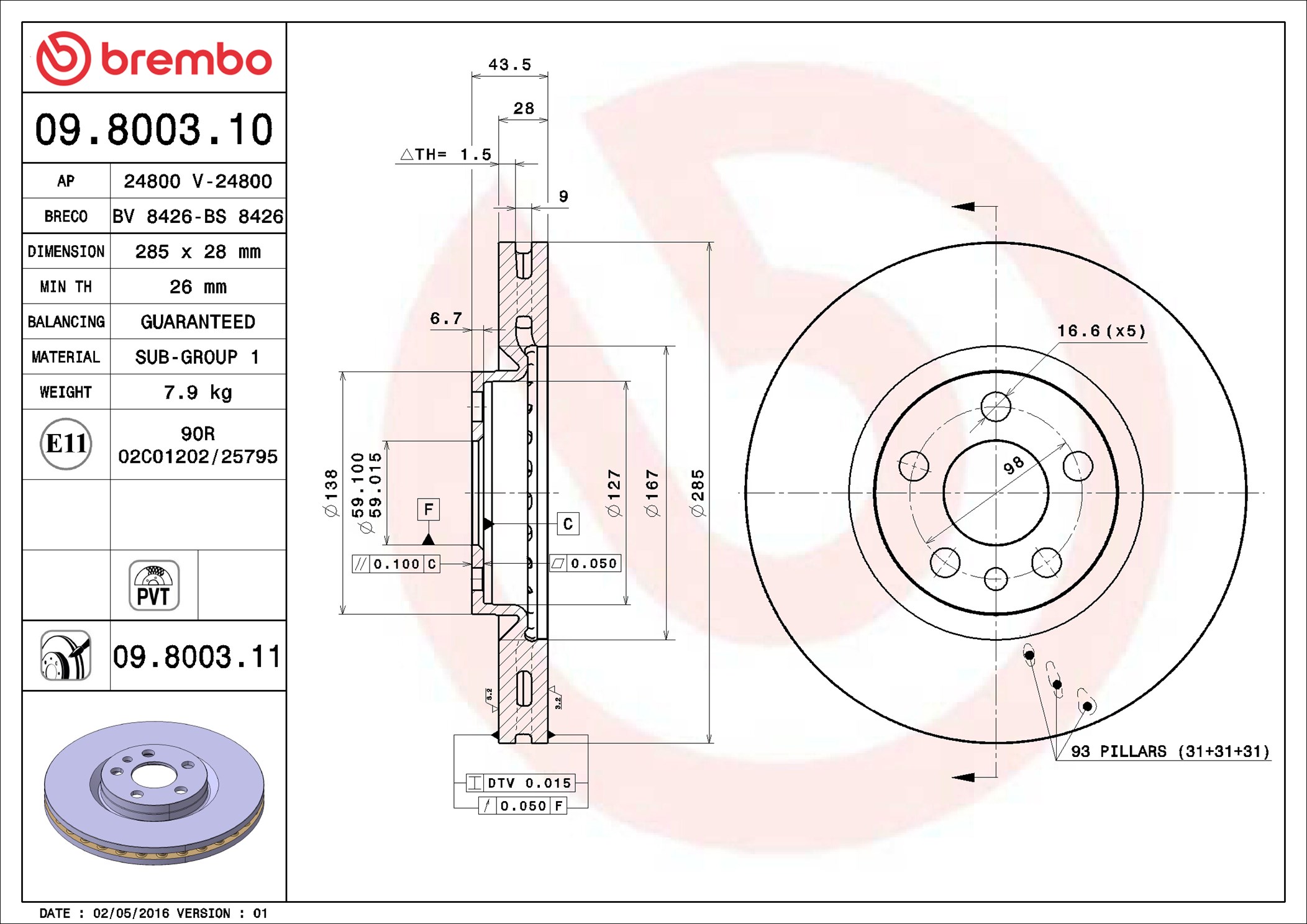 BREMBO 09.8003.11 - Brzdový kotouč
