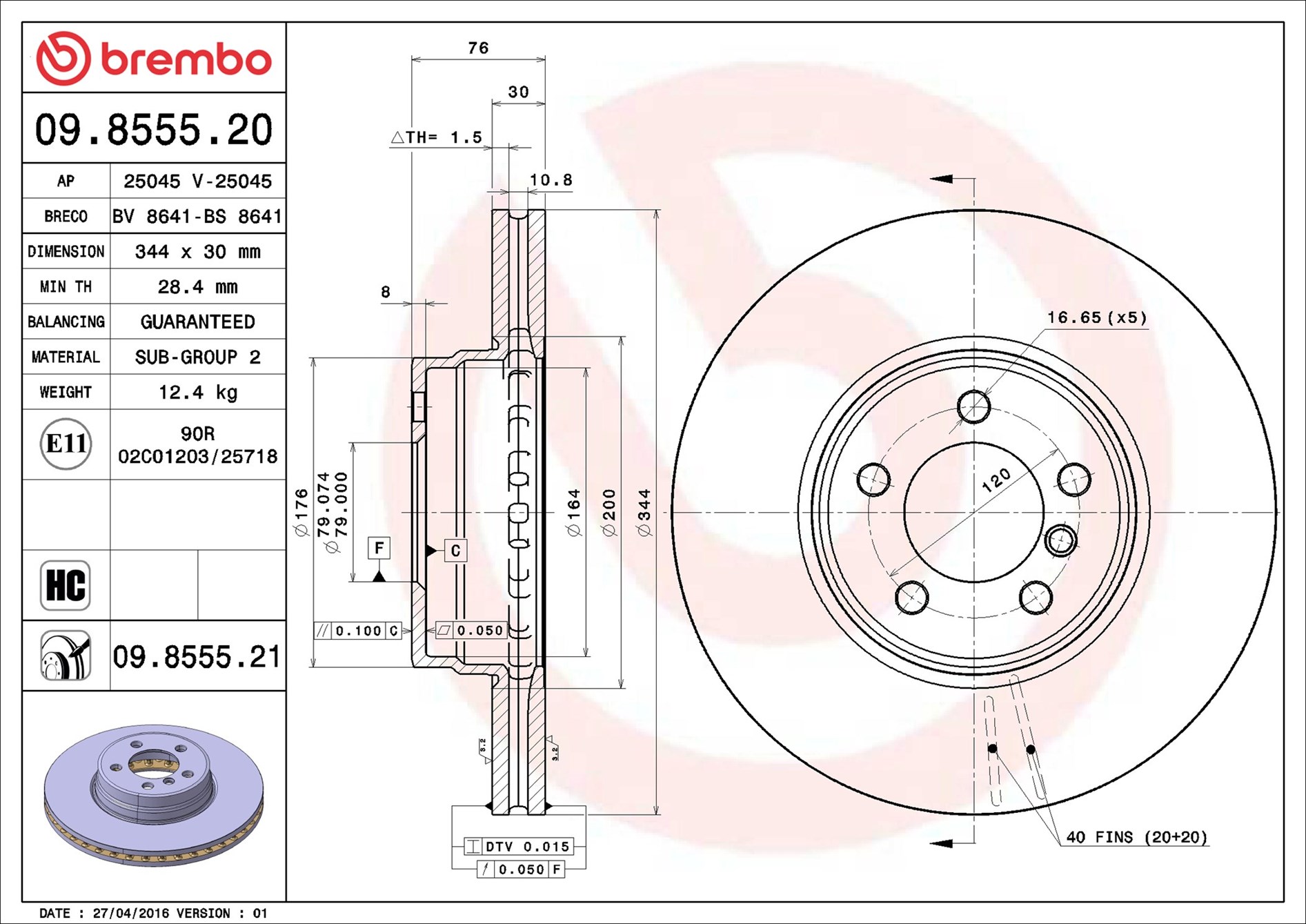 BREMBO 09.8555.21 - Brzdový kotouč