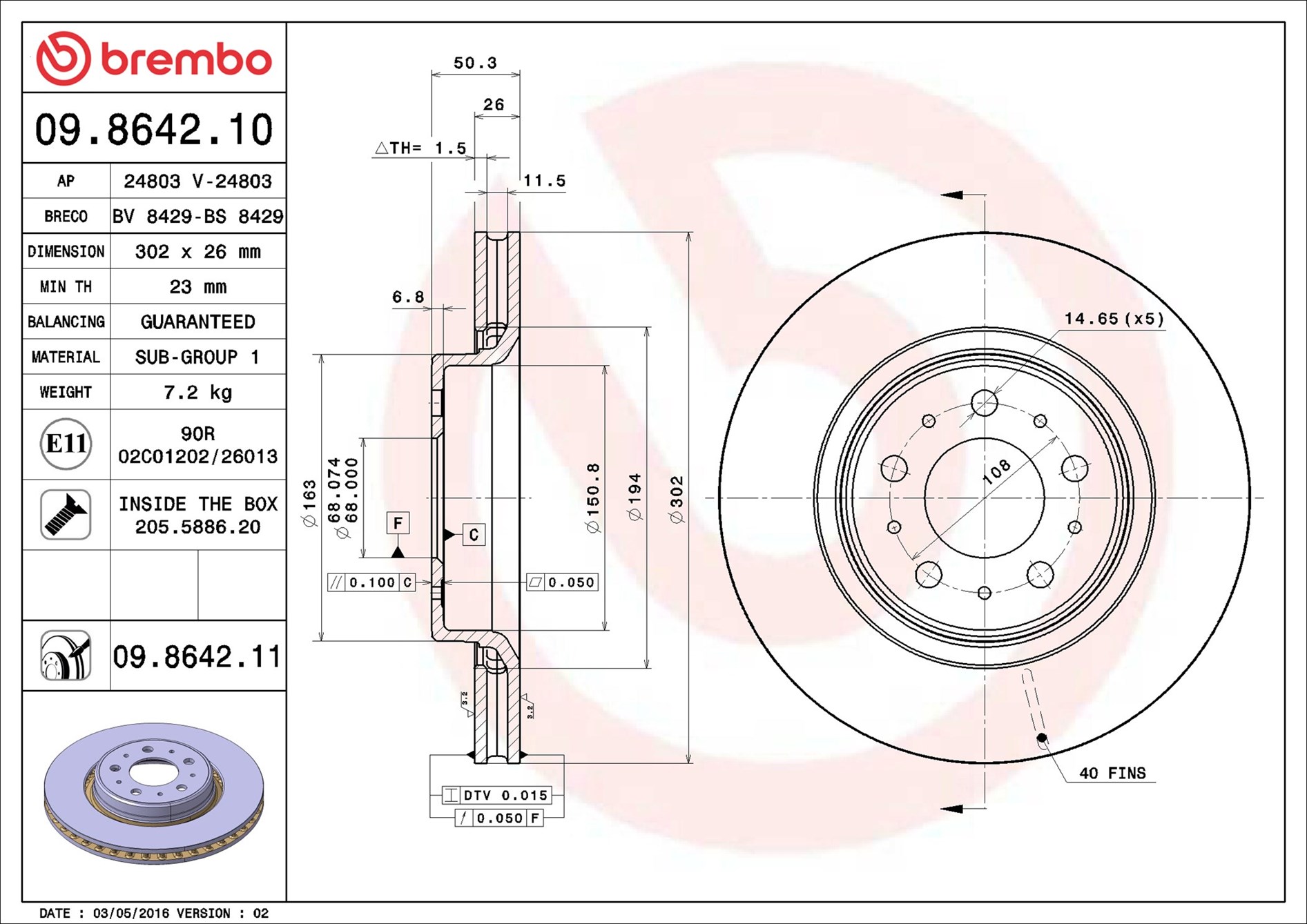 BREMBO 09.8642.11 - Brzdový kotouč