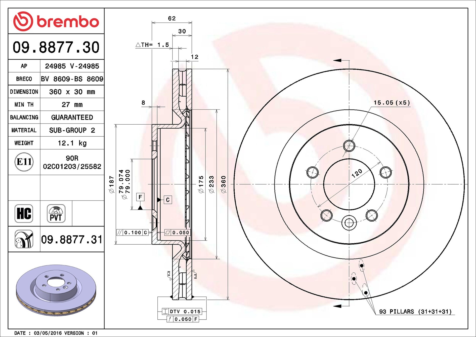 BREMBO 09.8877.31 - Brzdový kotouč