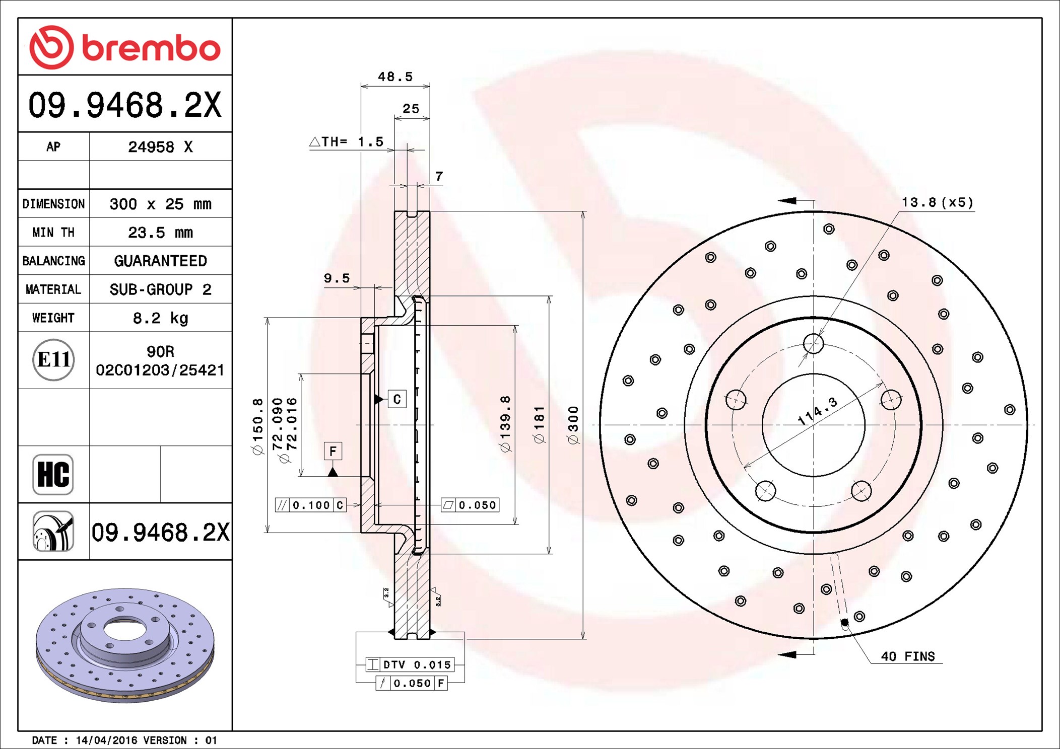 BREMBO 09.9468.2X - Brzdový kotouč