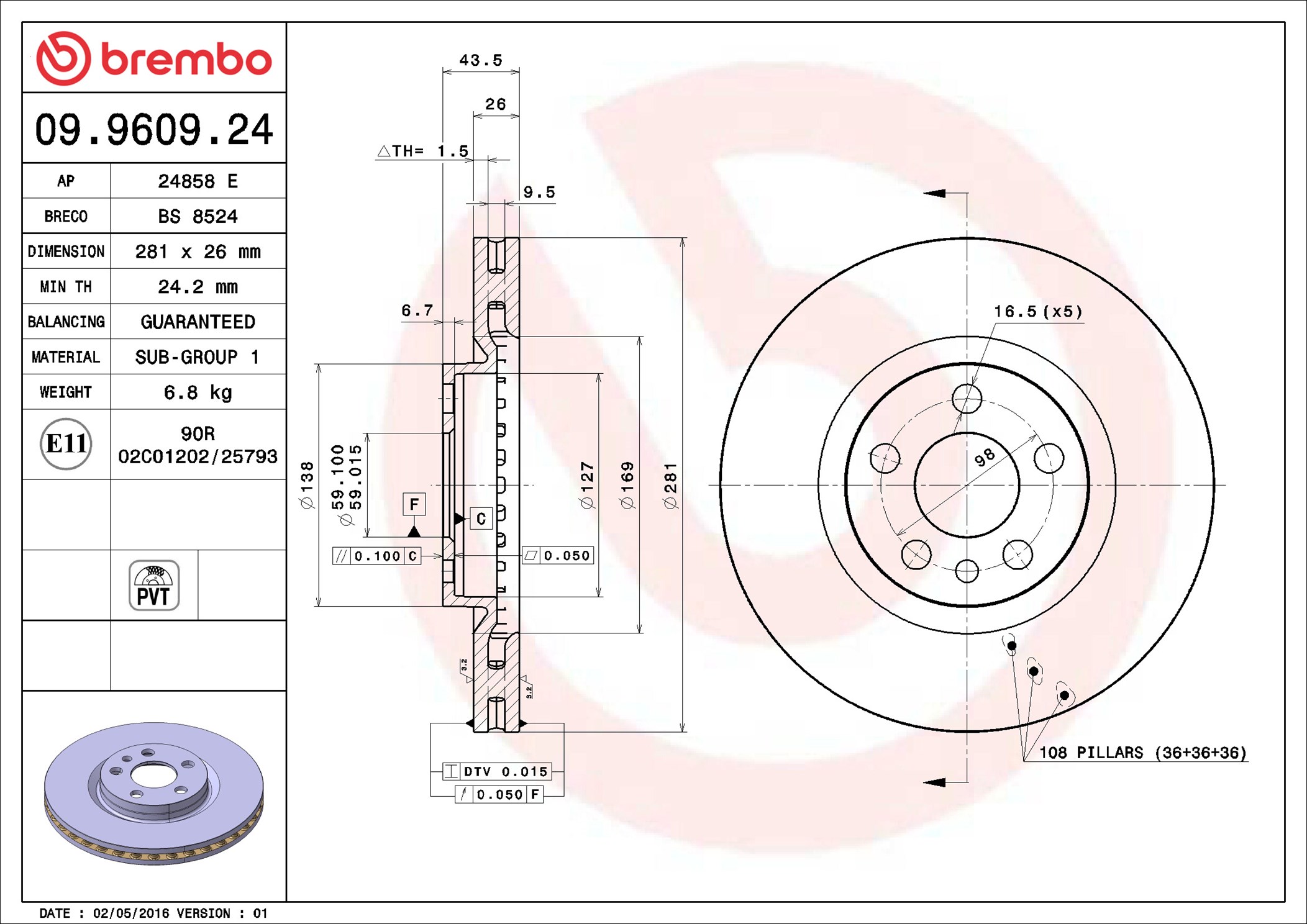 BREMBO 09.9609.24 - Brzdový kotouč
