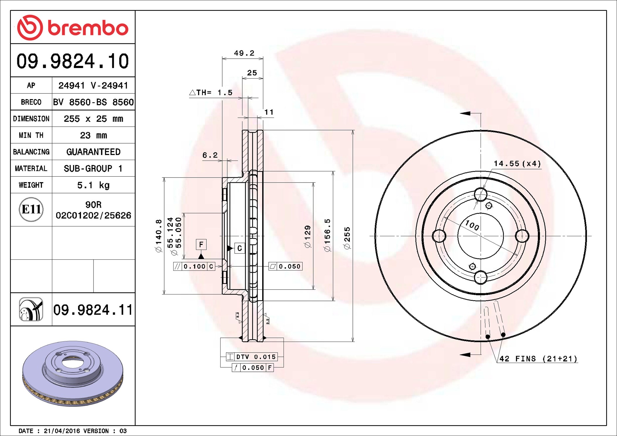 BREMBO 09.9824.11 - Brzdový kotouč
