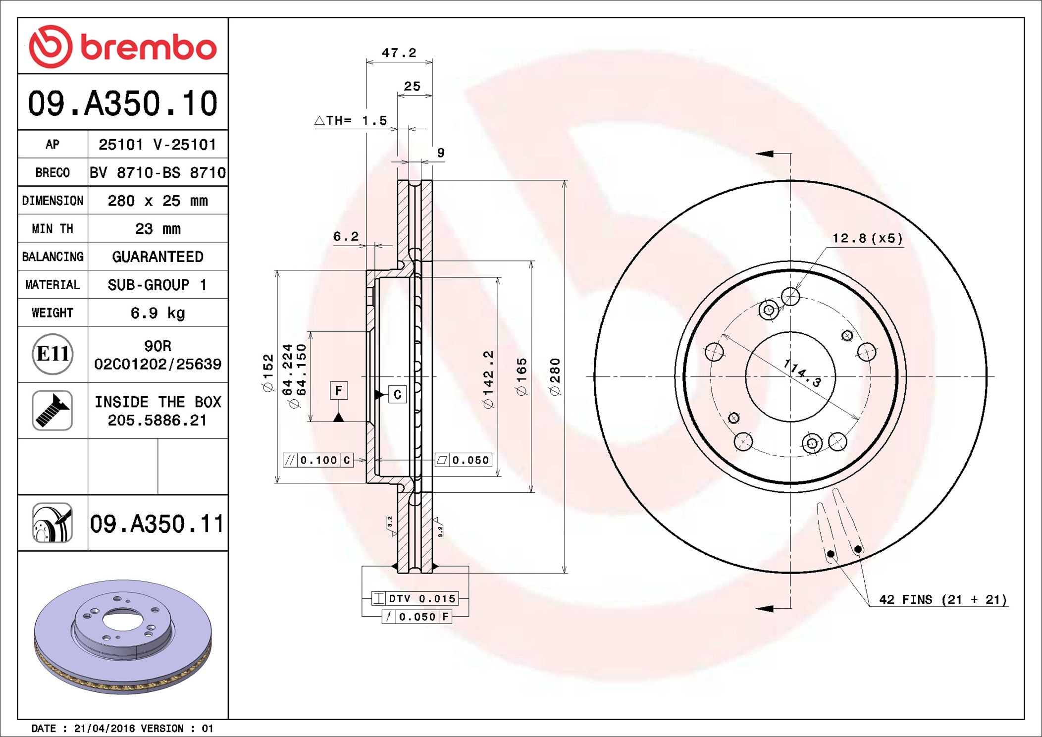 BREMBO 09.A350.11 - Brzdový kotouč