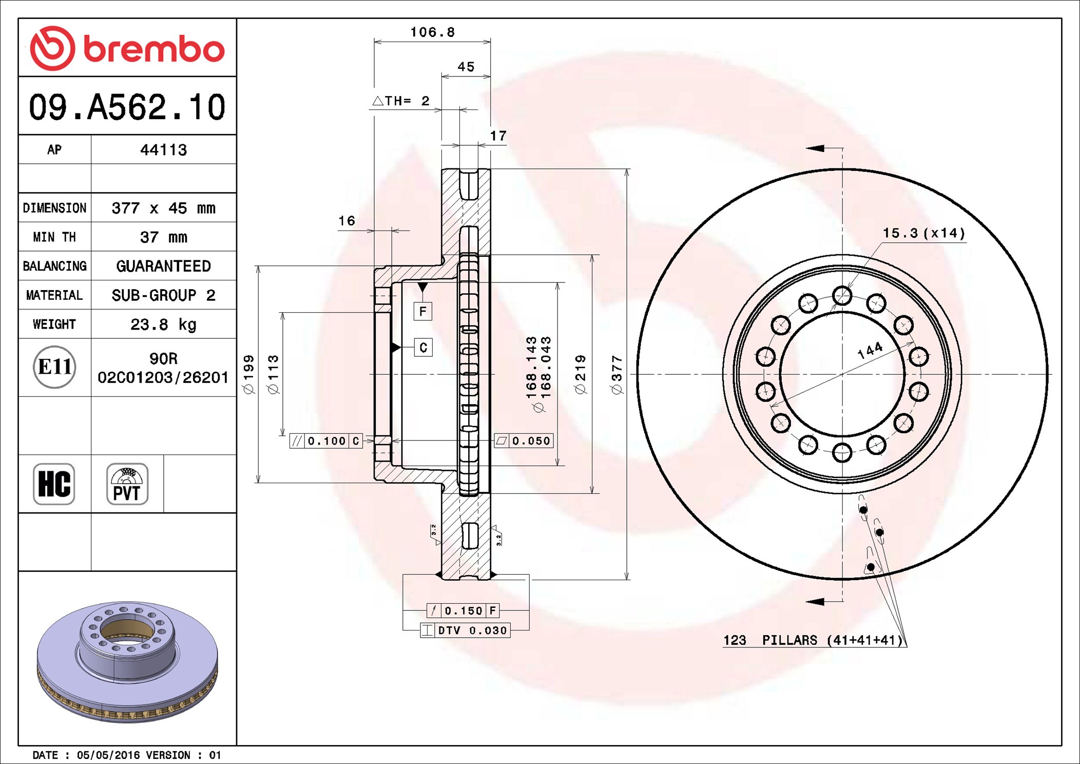 BREMBO 09.A562.10 - Brzdový kotouč