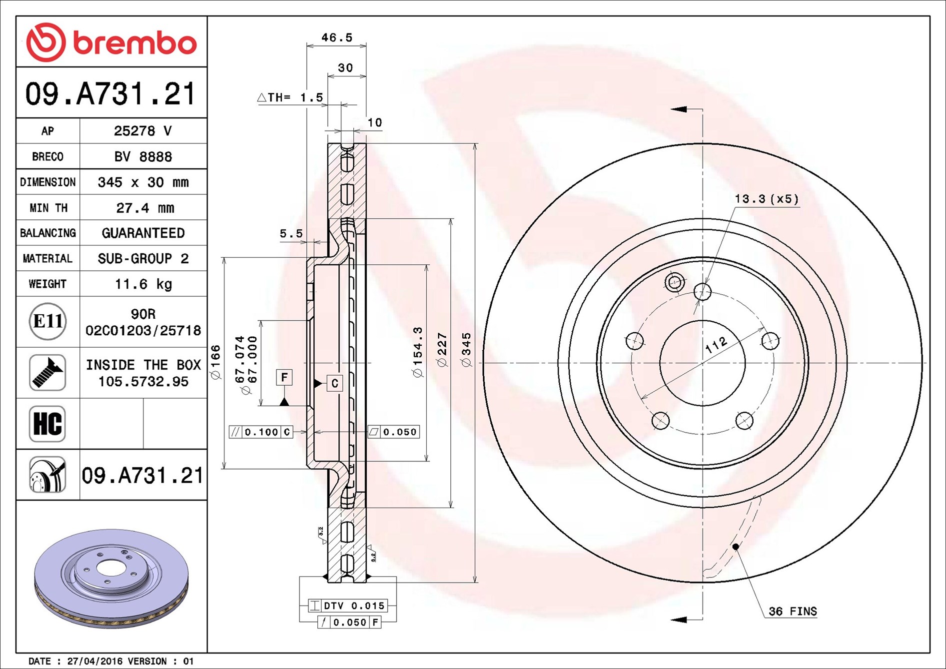 BREMBO 09.A731.21 - Brzdový kotouč