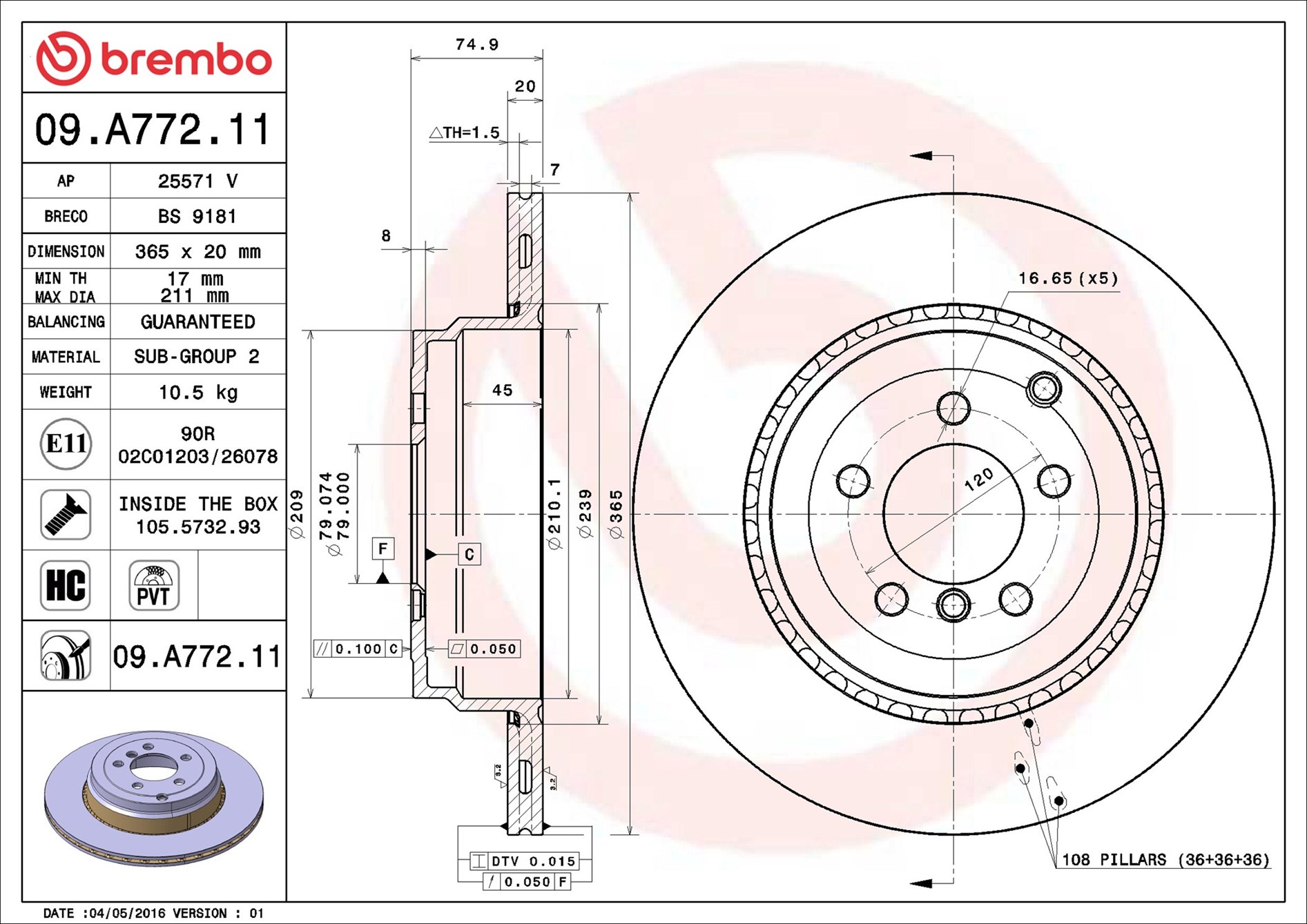 BREMBO 09.A772.11 - Brzdový kotouč
