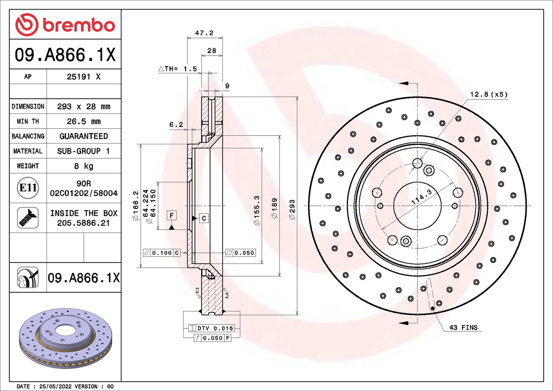 BREMBO 09.A866.1X - Brzdový kotouč