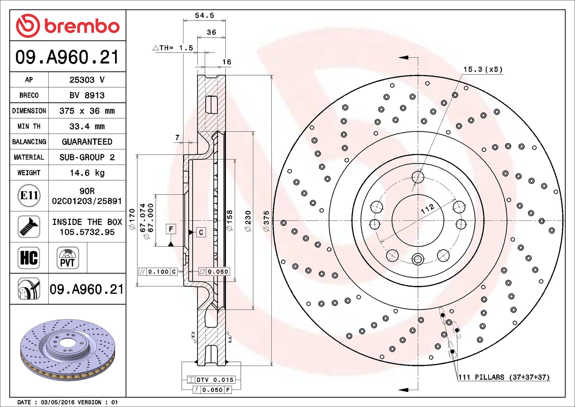 BREMBO 09.A960.21 - Brzdový kotouč
