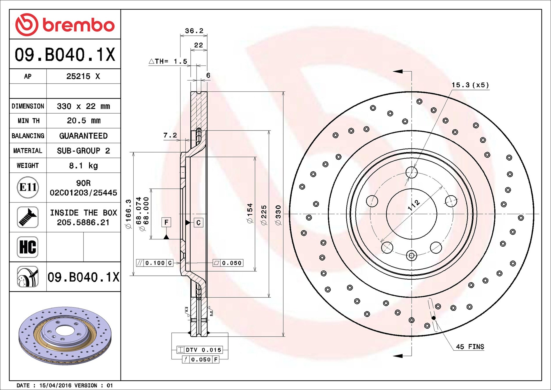 BREMBO 09.B040.1X - Brzdový kotouč