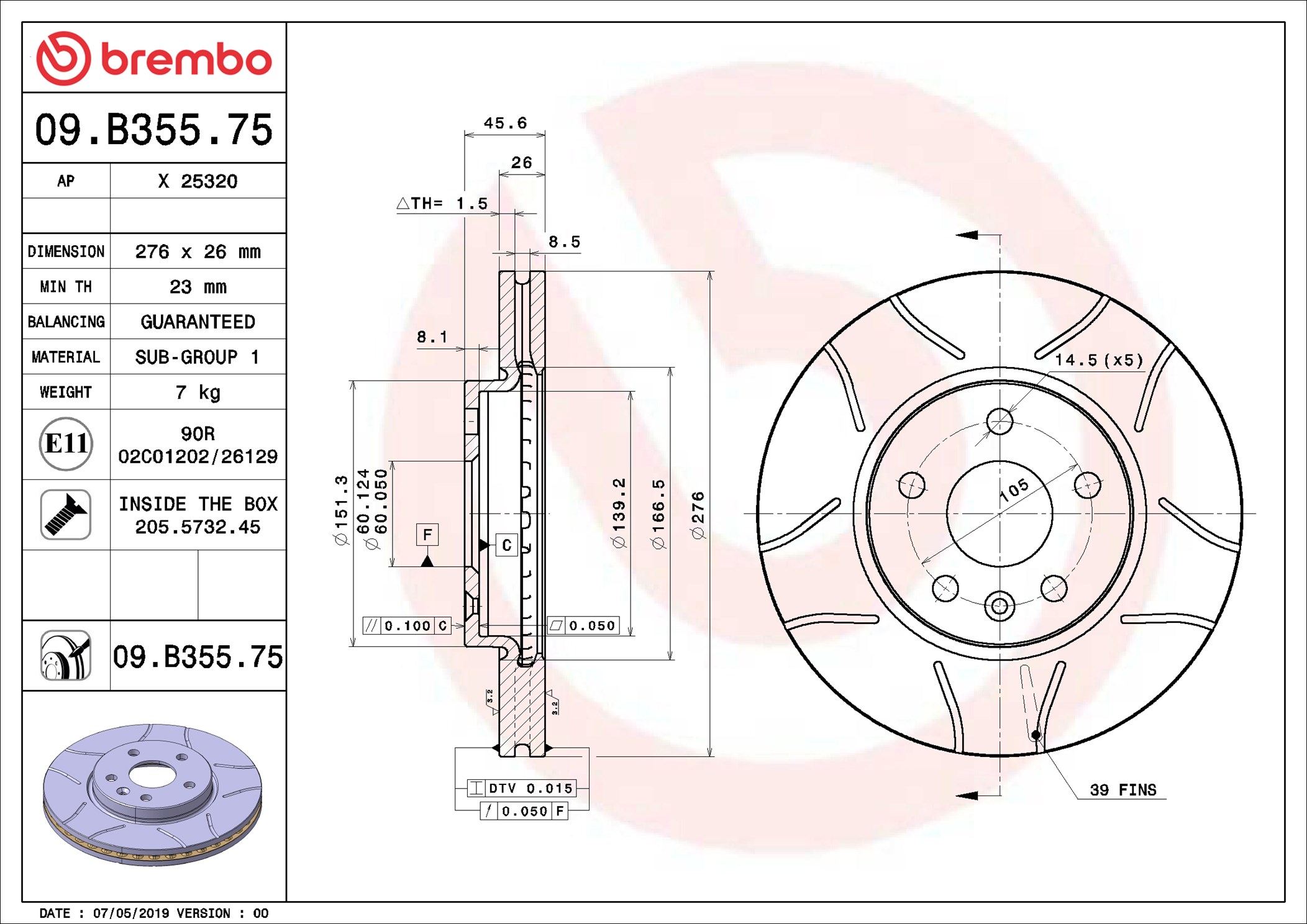 BREMBO 09.B355.75 - Brzdový kotouč