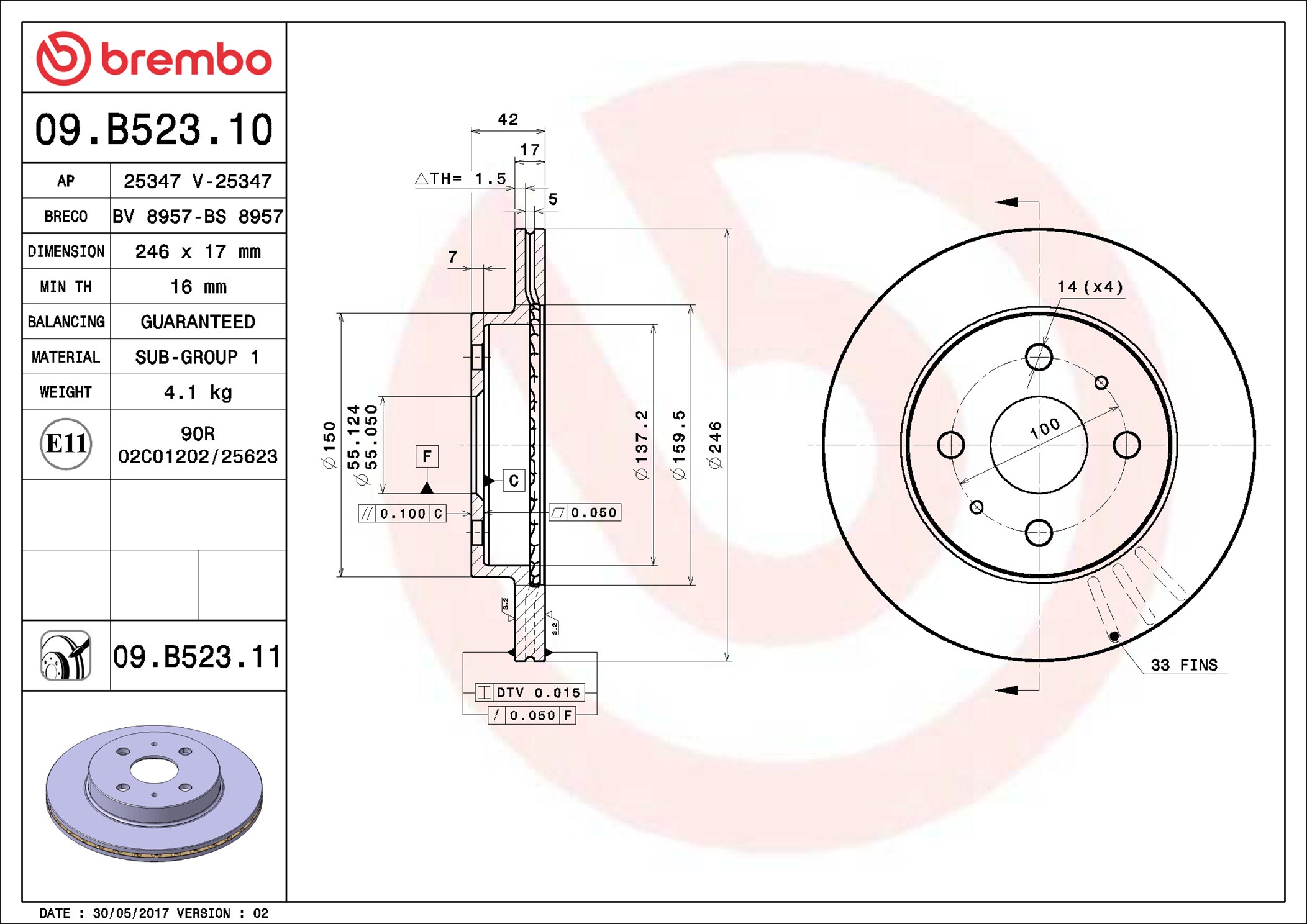 BREMBO 09.B523.10 - Brzdový kotouč