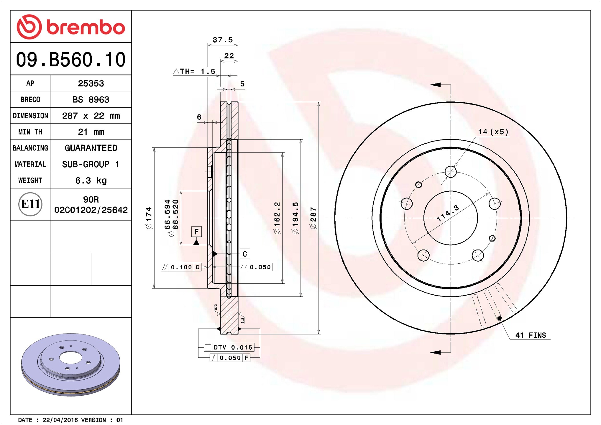 BREMBO 09.B560.10 - Brzdový kotouč