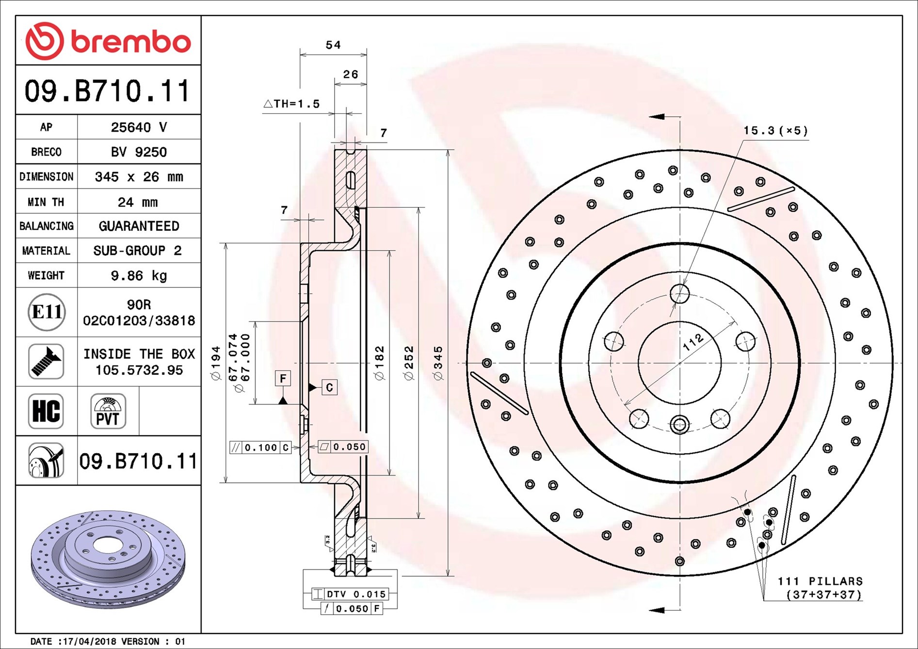 BREMBO 09.B710.11 - Brzdový kotouč