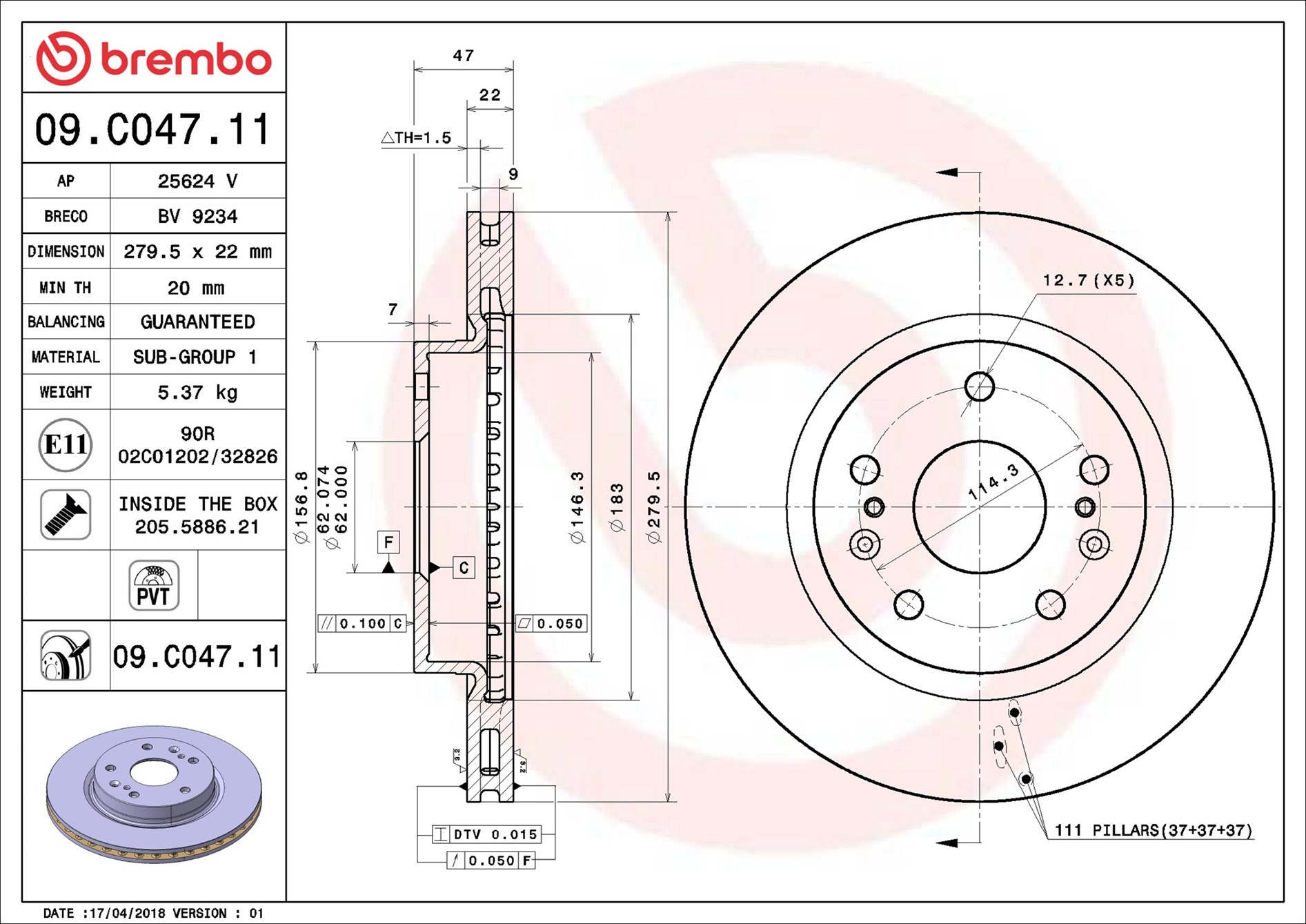 BREMBO 09.C047.11 - Brzdový kotouč