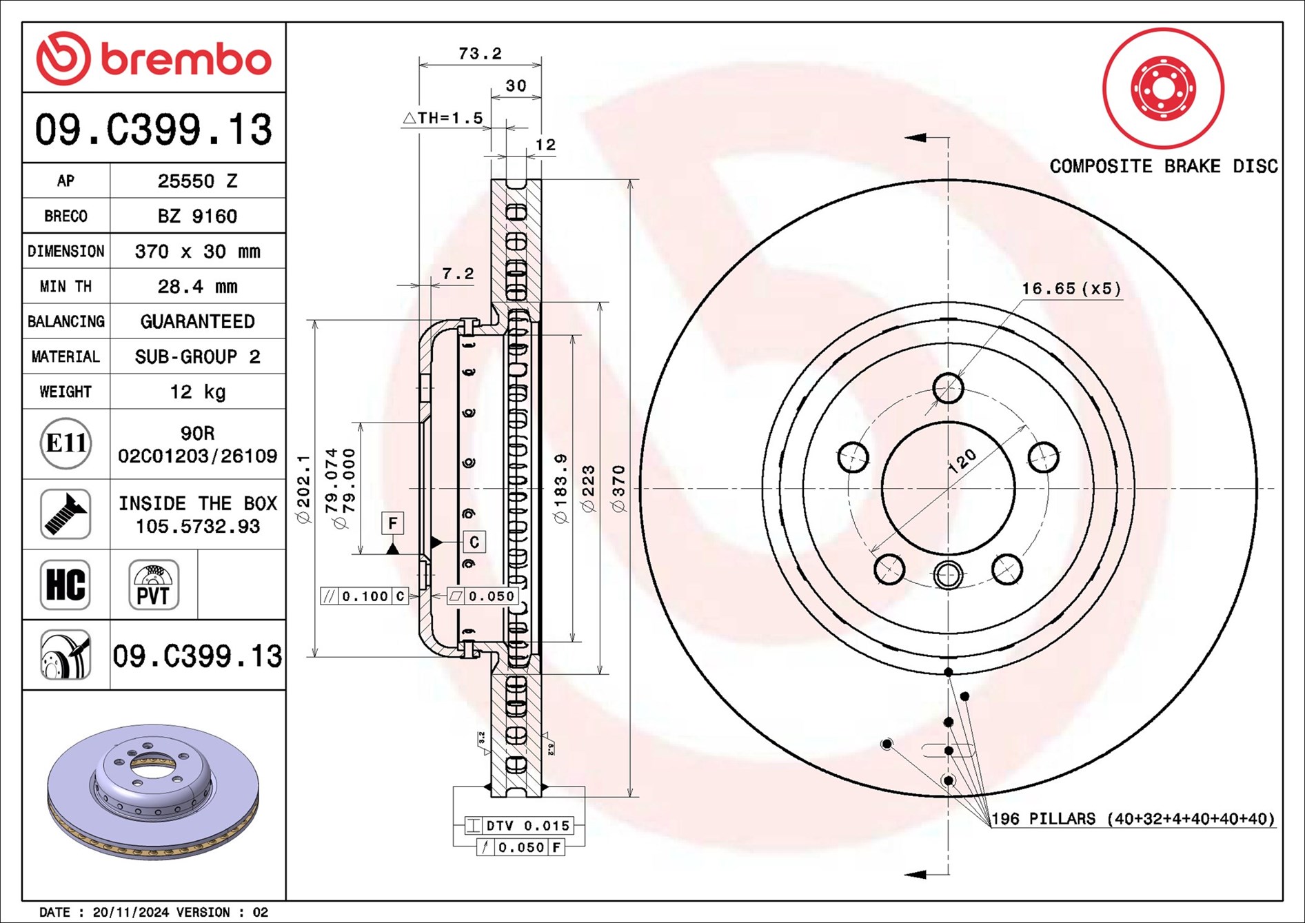 BREMBO 09.C399.13 - Brzdový kotouč