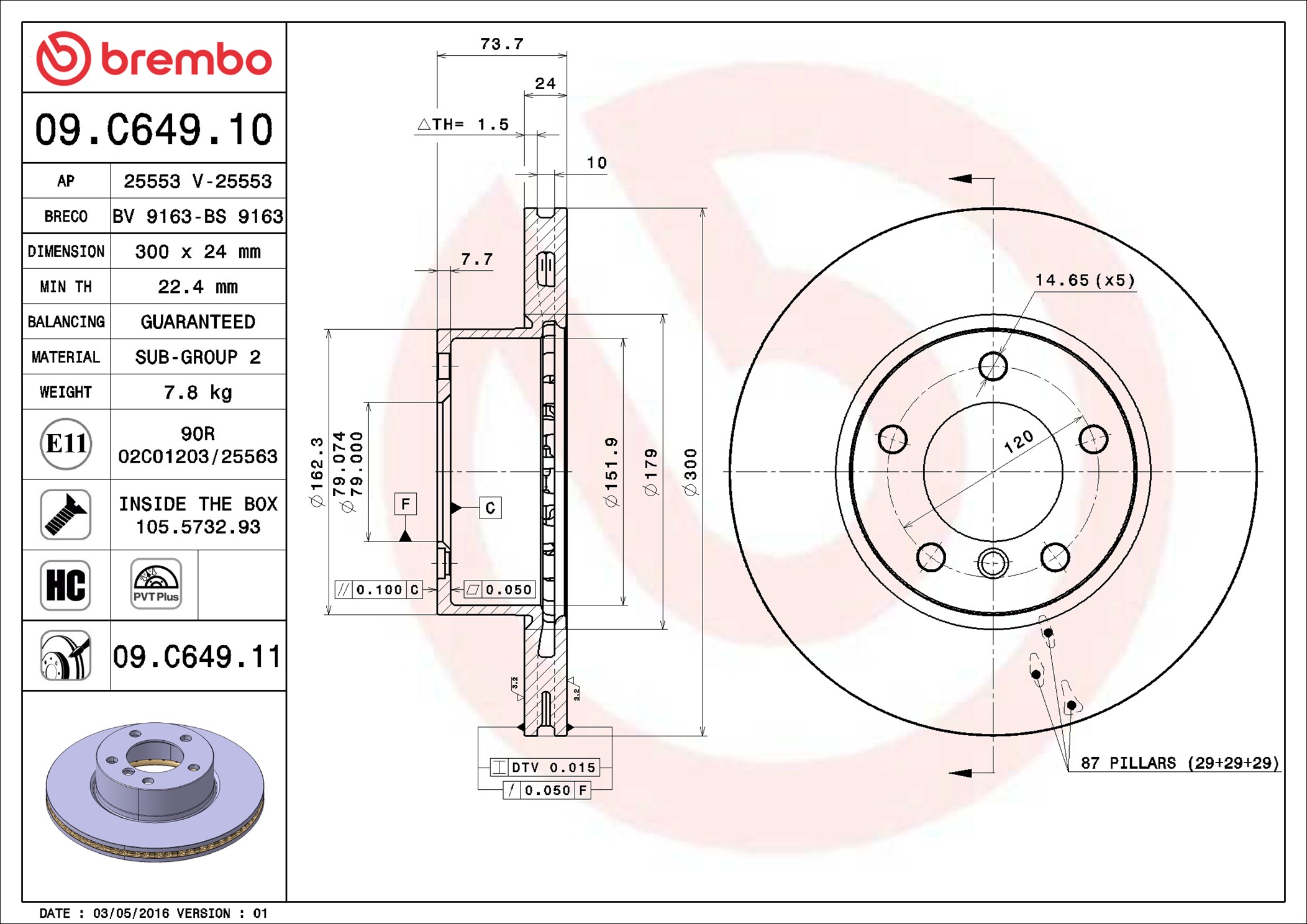 BREMBO 09.C649.11 - Brzdový kotouč
