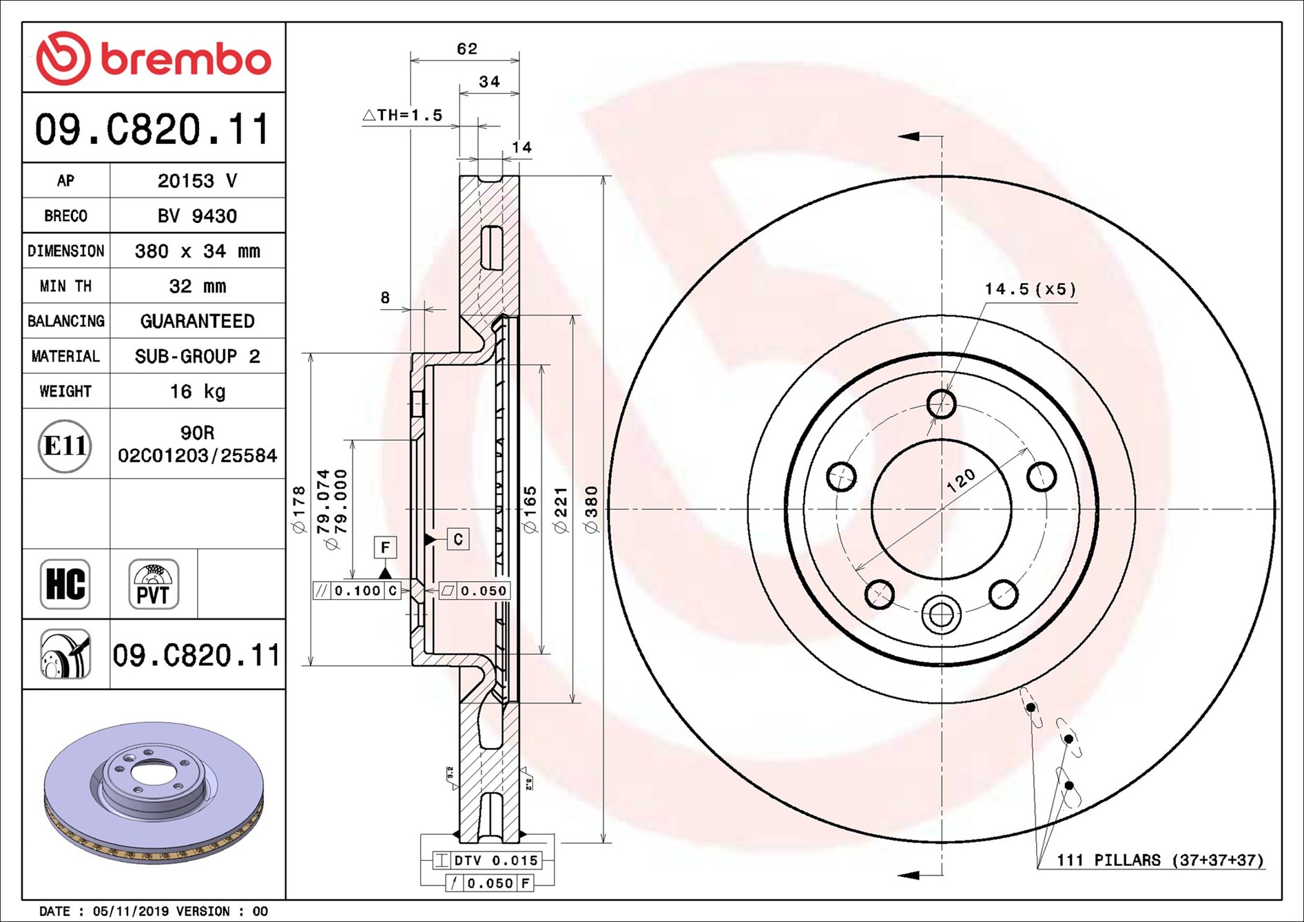 BREMBO 09.C820.11 - Brzdový kotouč