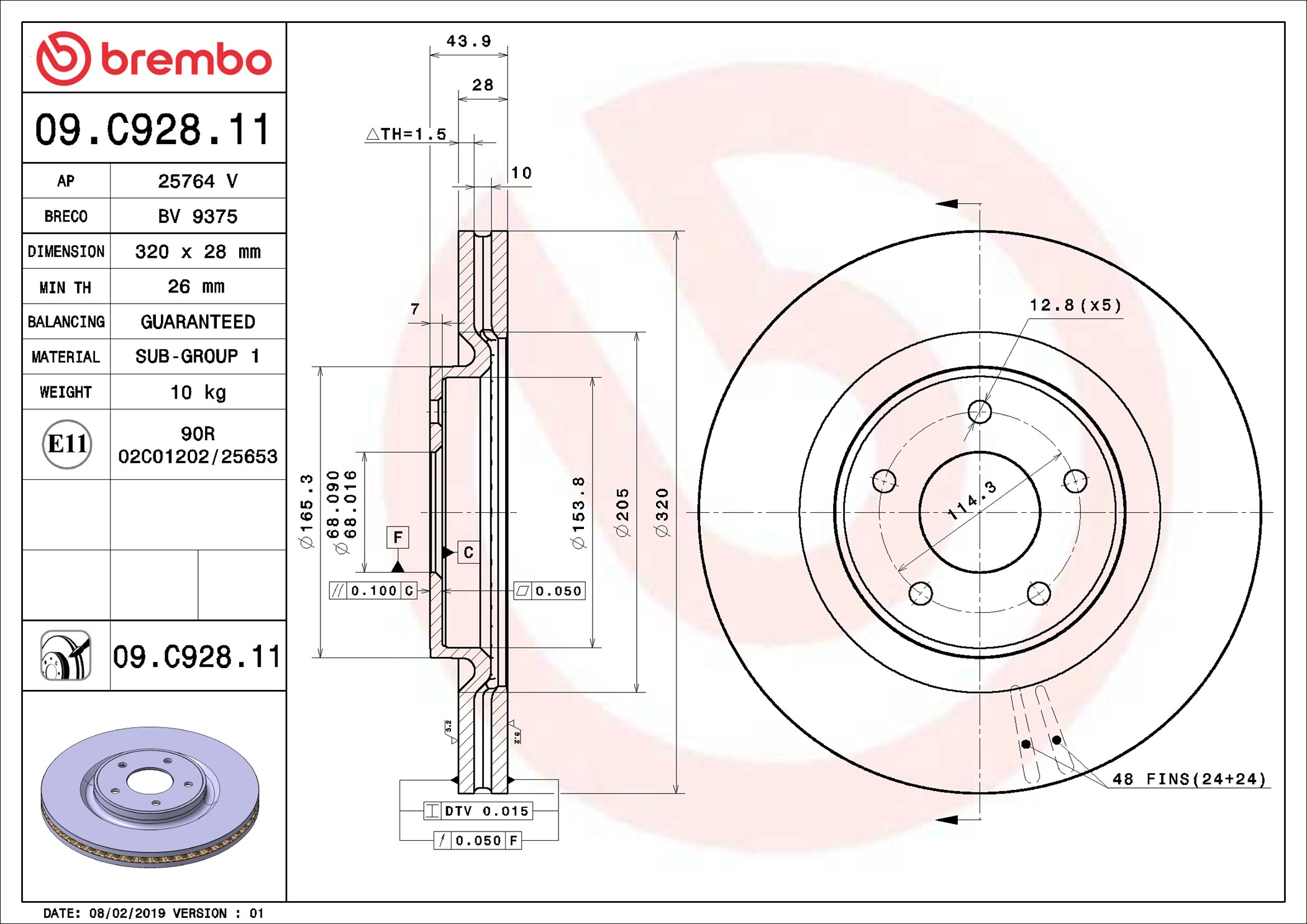 BREMBO 09.C928.11 - Brzdový kotouč