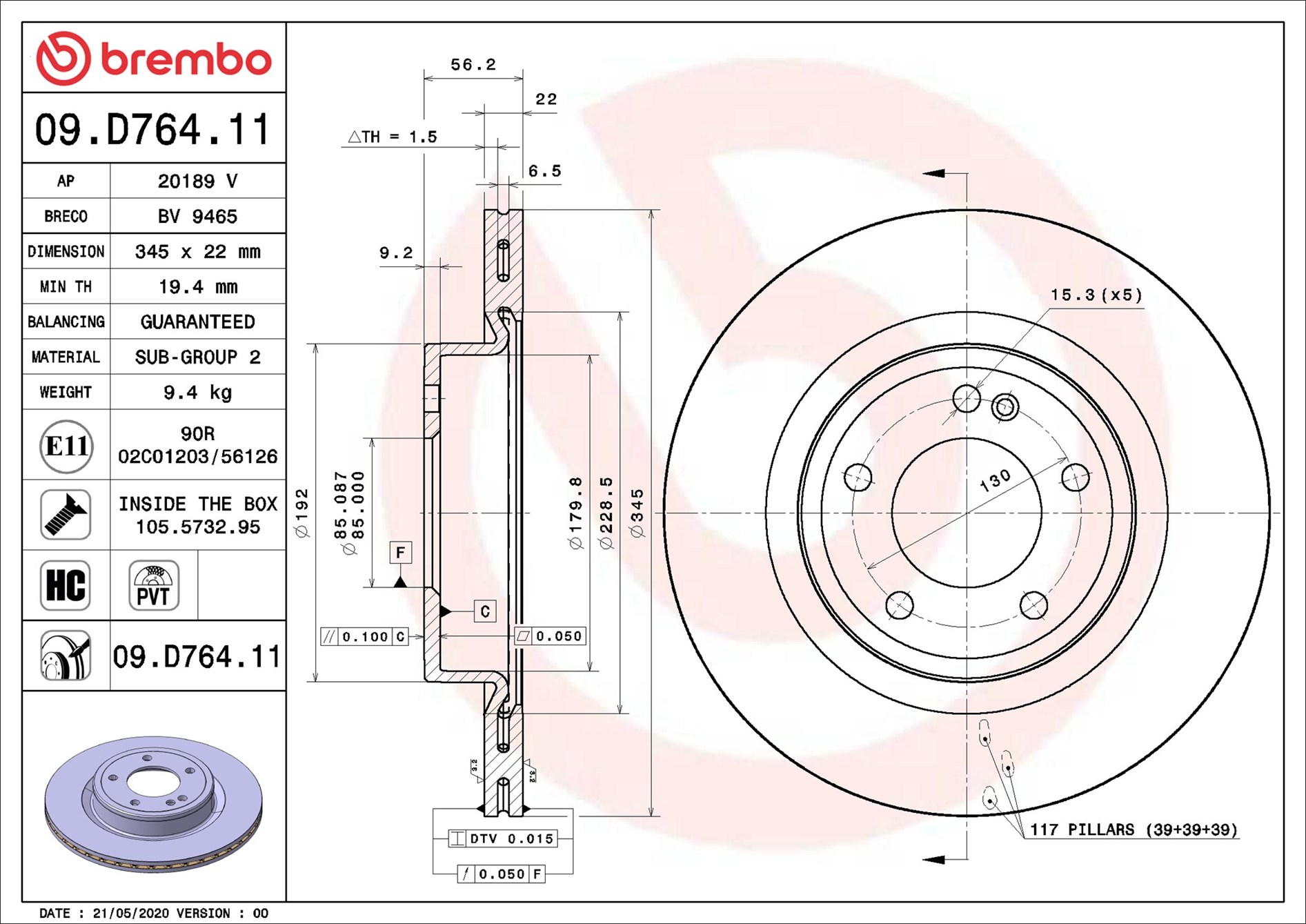 BREMBO 09.D764.11 - Brzdový kotouč