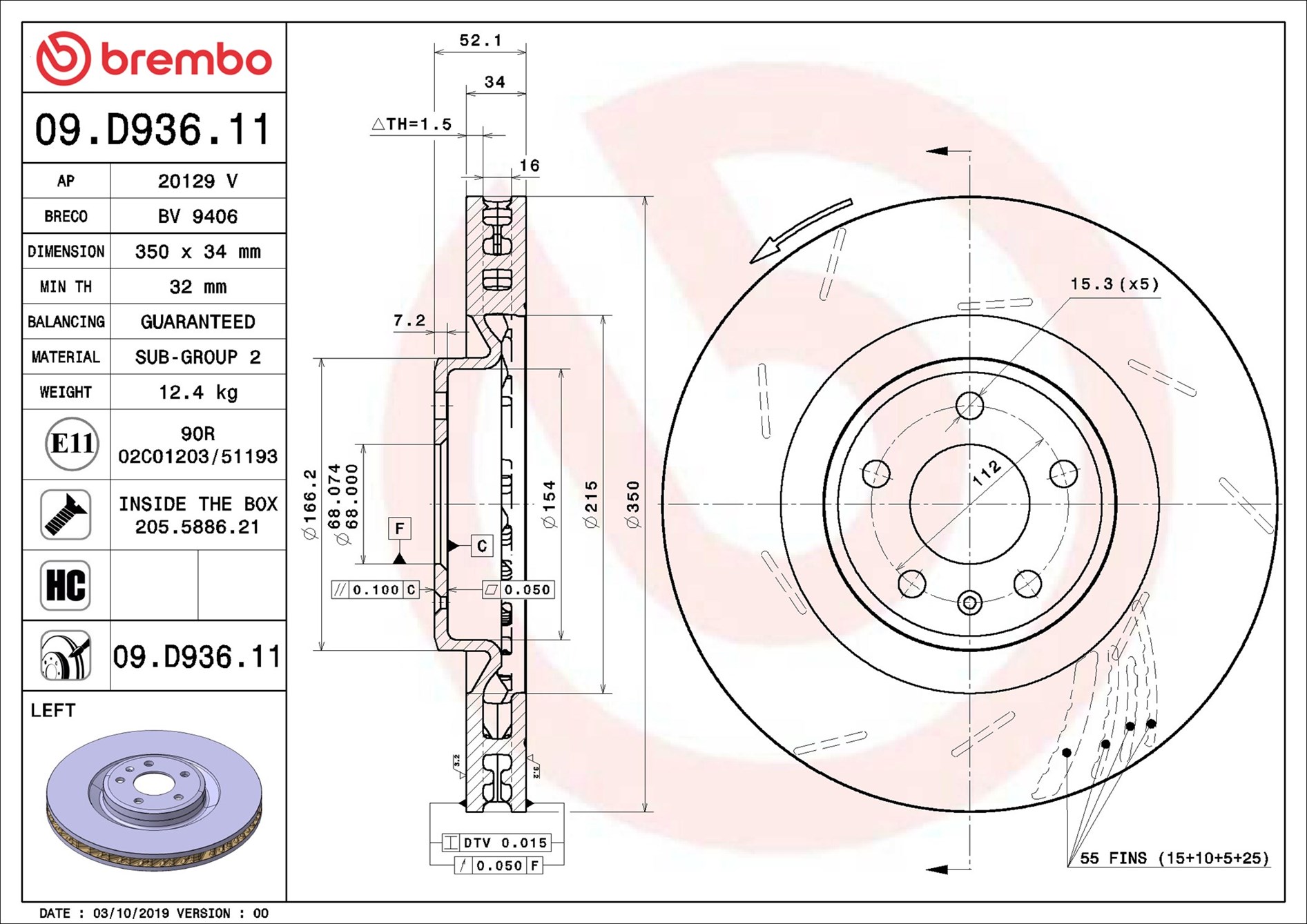 BREMBO 09.D936.11 - Brzdový kotouč