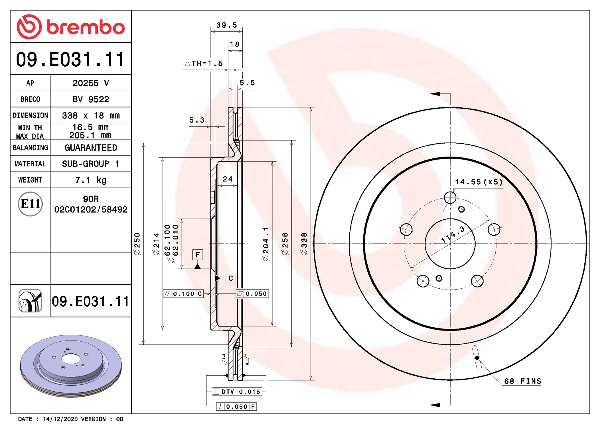 BREMBO 09.E031.11 - Brzdový kotouč