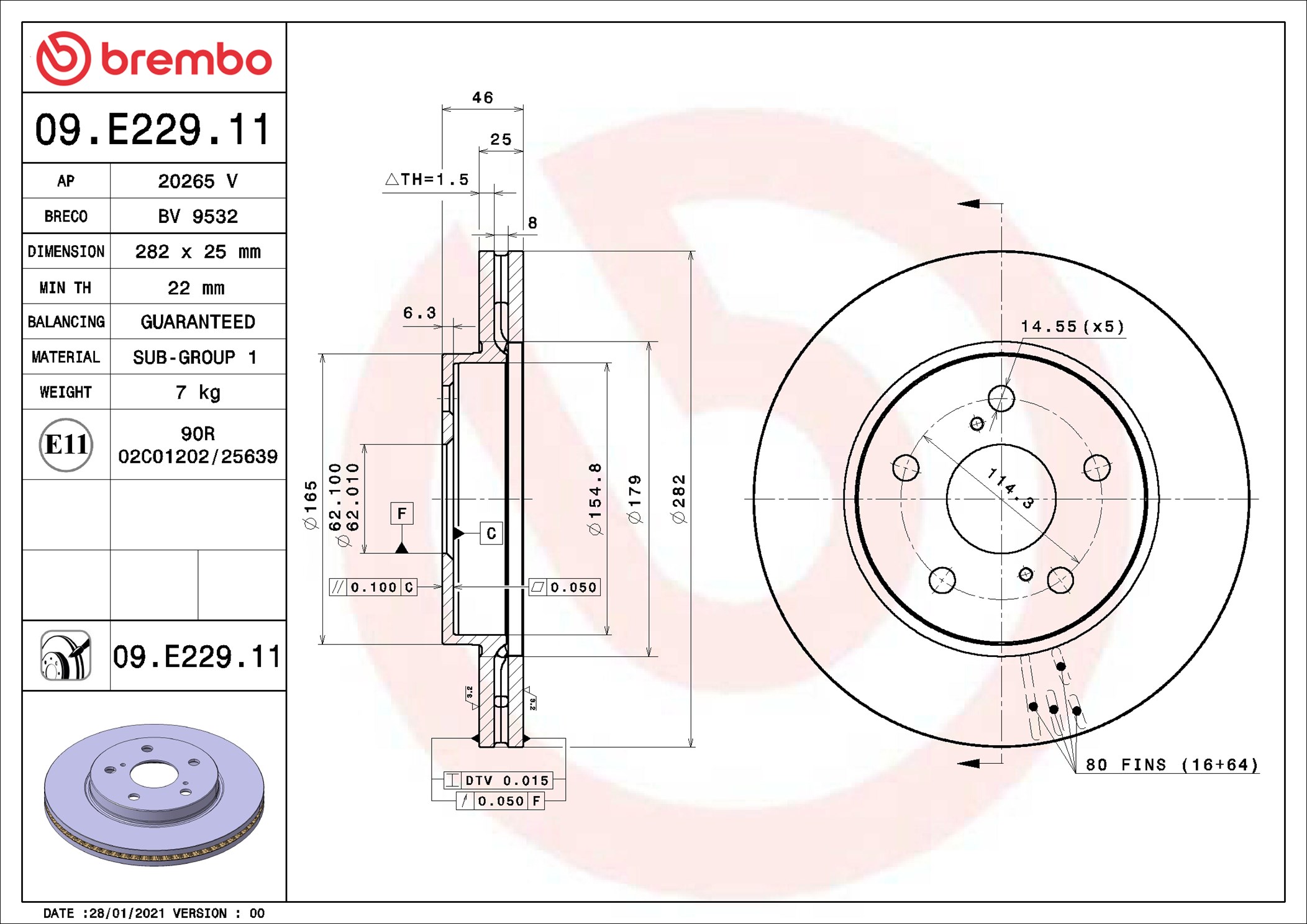 BREMBO 09.E229.11 - Brzdový kotouč