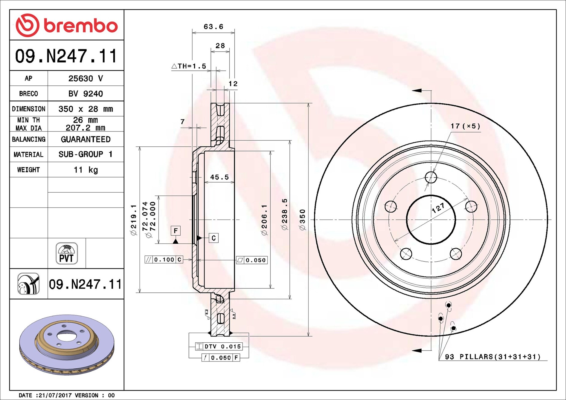 BREMBO 09.N247.11 - Brzdový kotouč
