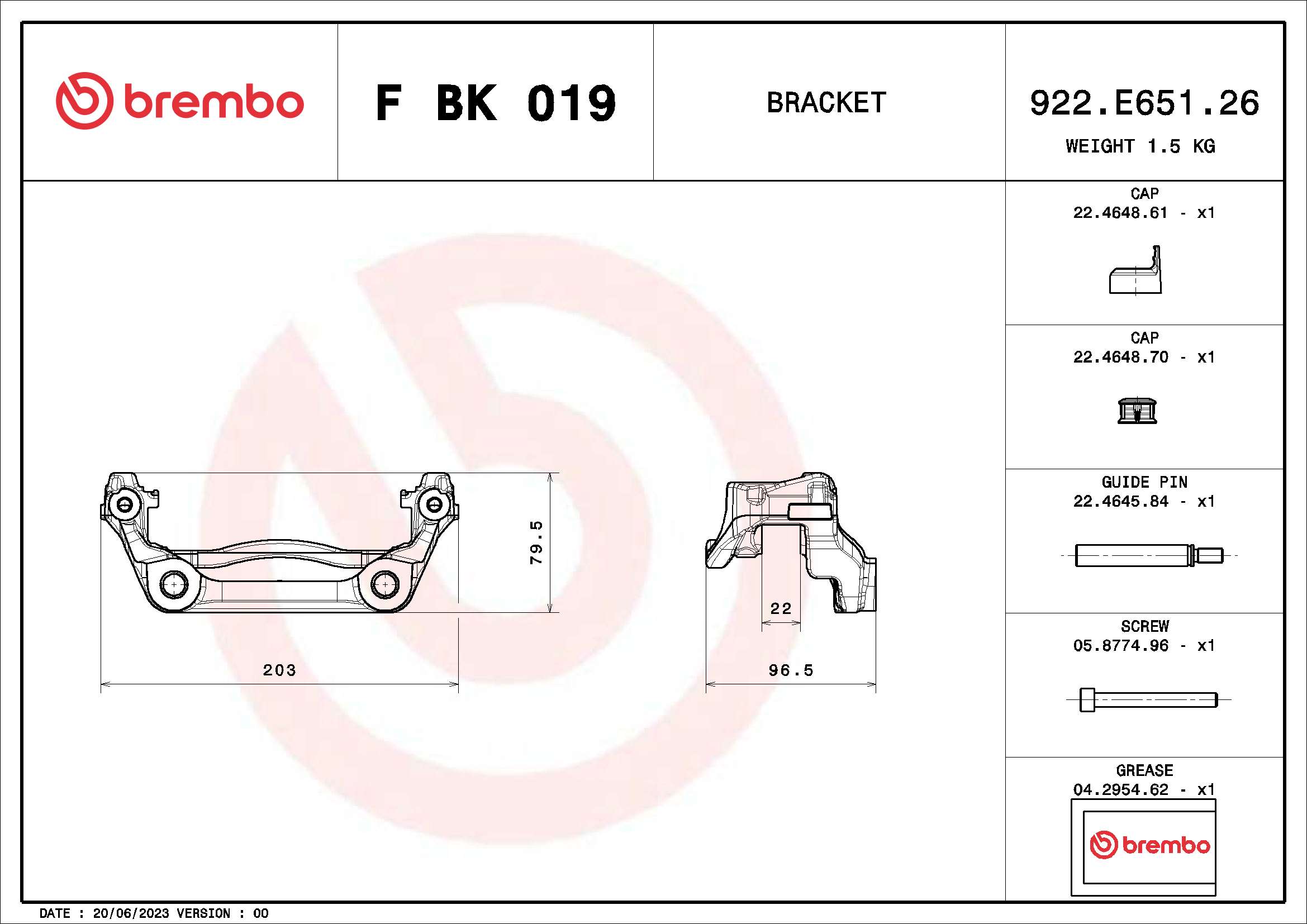 BREMBO F BK 019 - Sada držáků brzdových třmenů