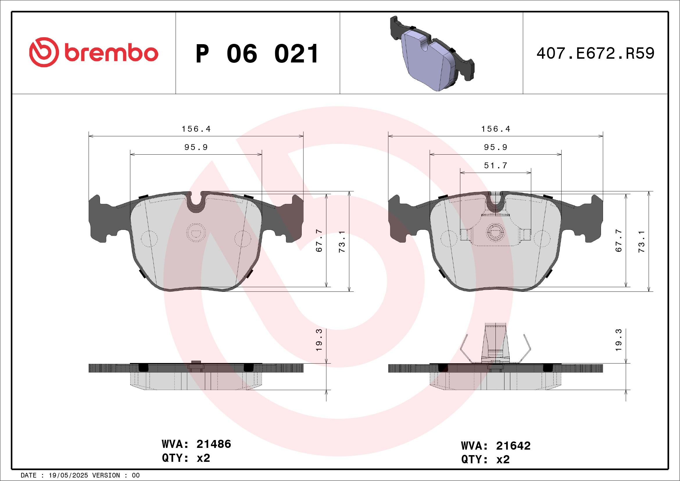 BREMBO P 06 021 - Sada brzdových destiček, vždy 4 kusy v sadě