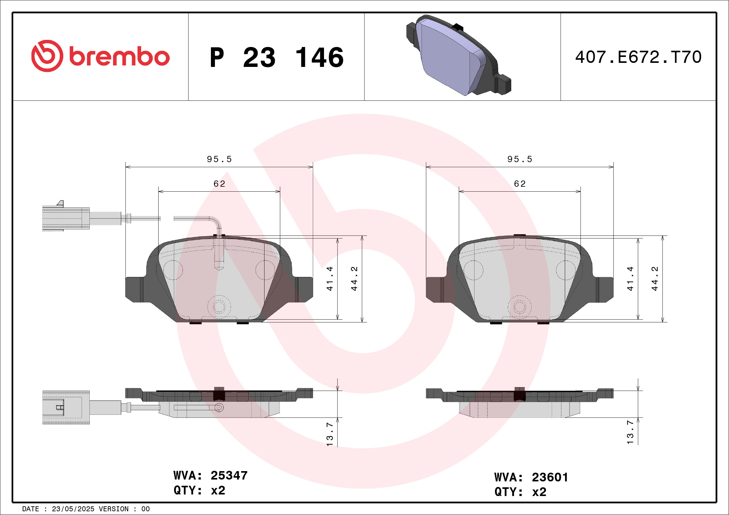 BREMBO P 23 146 - Sada brzdových destiček, vždy 4 kusy v sadě