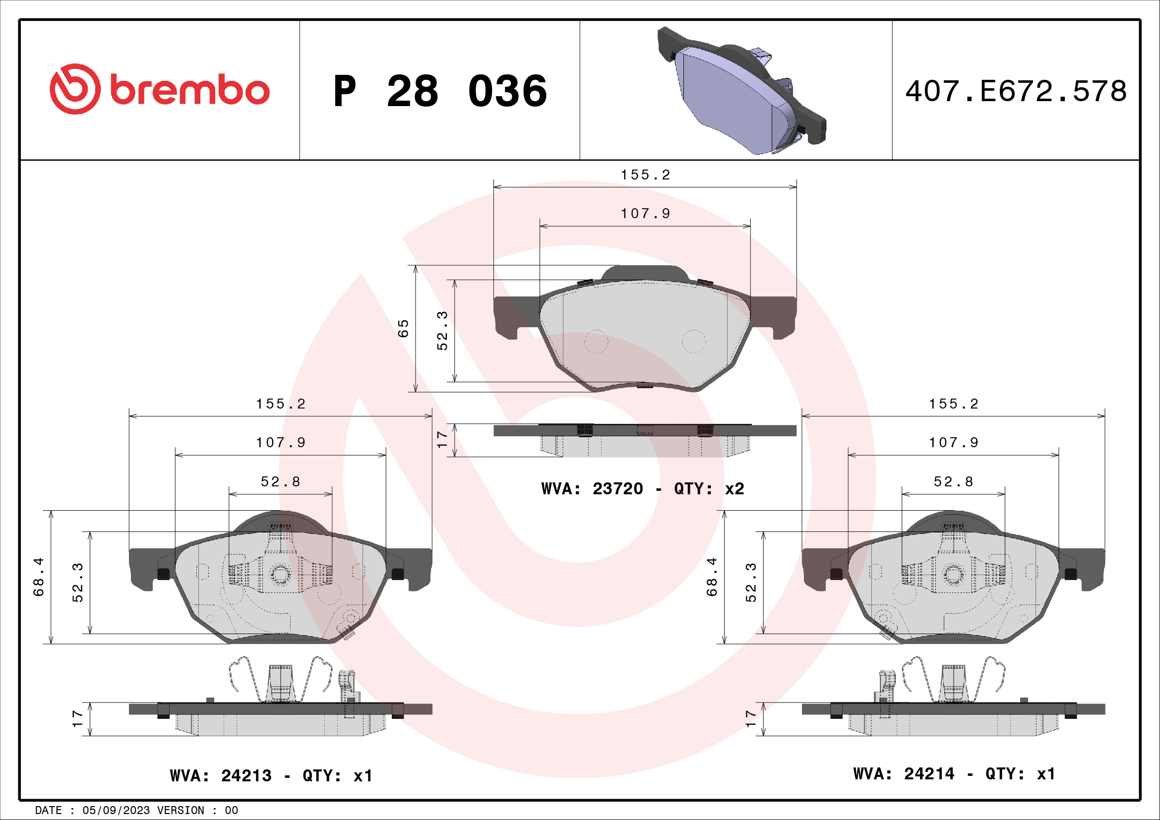 BREMBO P 28 036 - Sada brzdových destiček, vždy 4 kusy v sadě