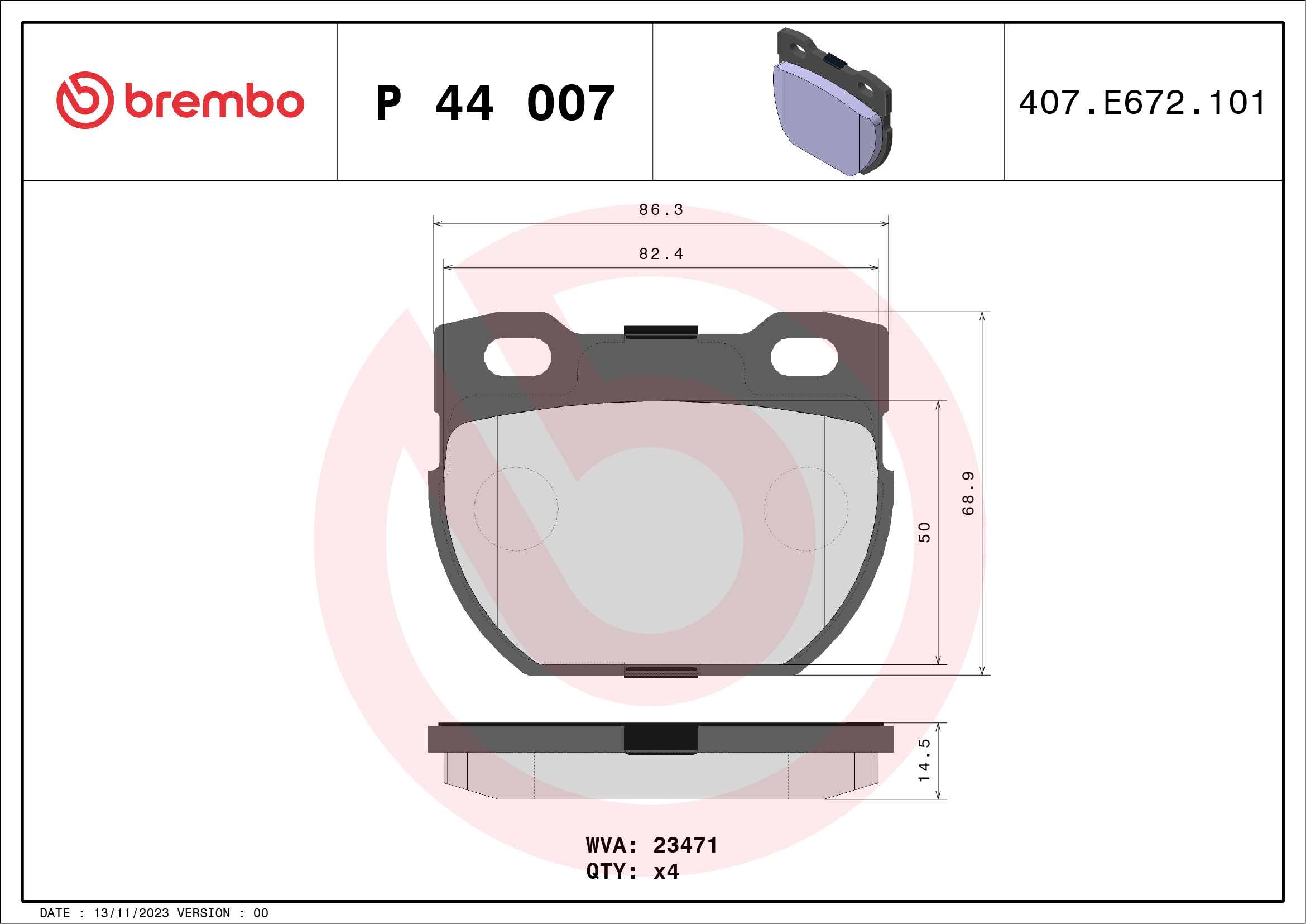 BREMBO P 44 007 - Sada brzdových destiček, vždy 4 kusy v sadě