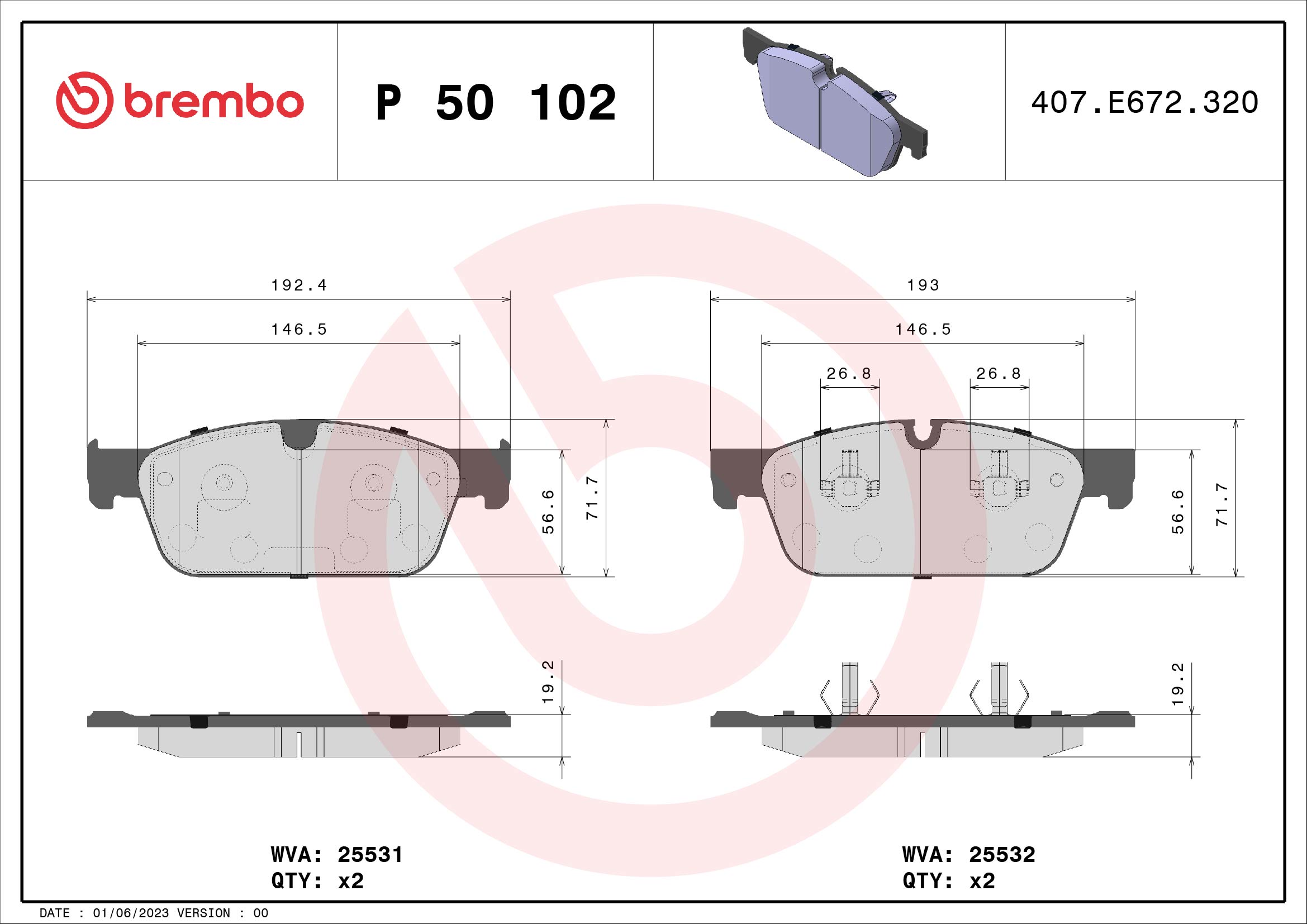 BREMBO P 50 102 - Sada brzdových destiček, vždy 4 kusy v sadě