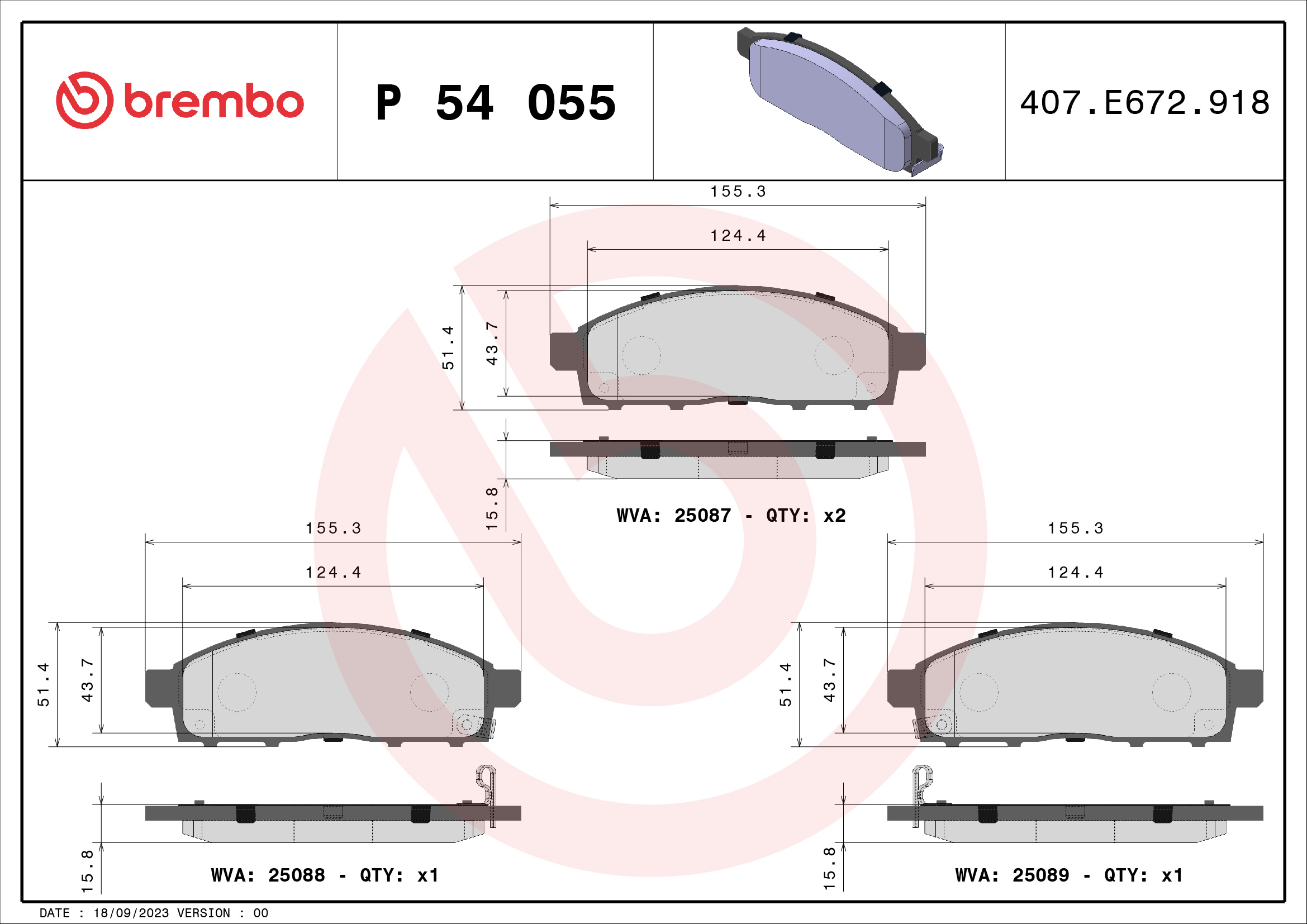 BREMBO P 54 055 - Sada brzdových destiček, vždy 4 kusy v sadě