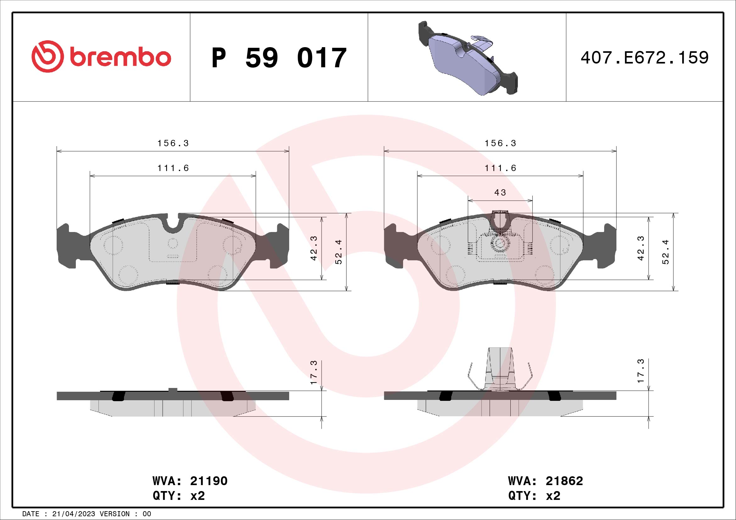BREMBO P 59 017 - Sada brzdových destiček, vždy 4 kusy v sadě