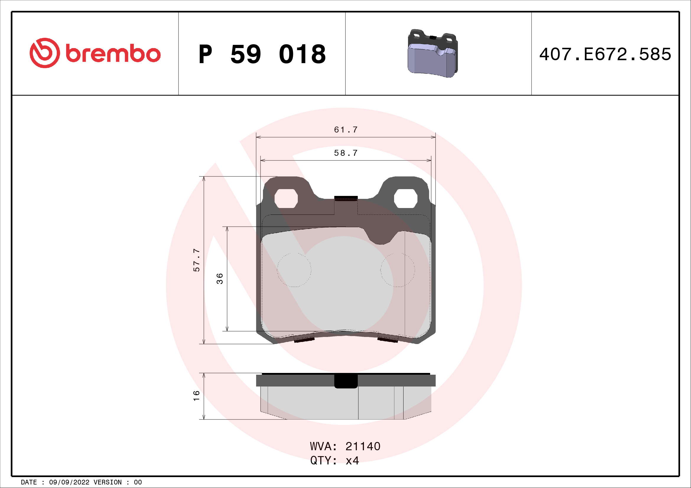 BREMBO P 59 018 - Sada brzdových destiček, vždy 4 kusy v sadě
