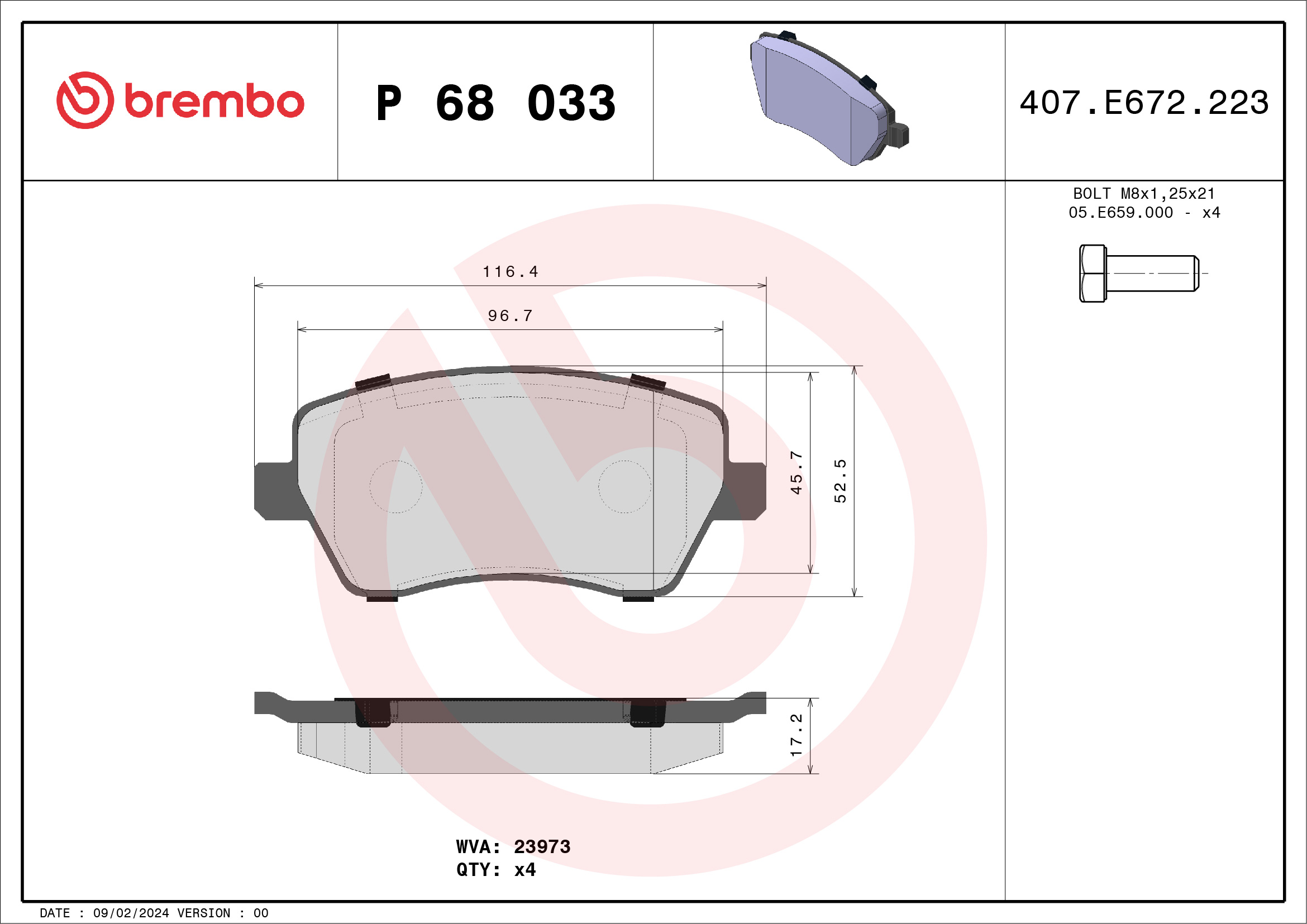 BREMBO P 68 033 - Sada brzdových destiček, vždy 4 kusy v sadě